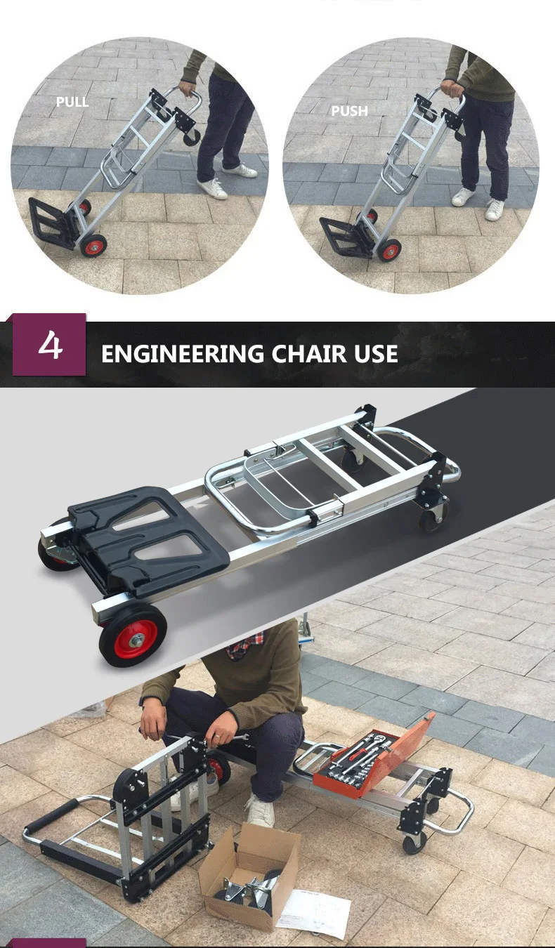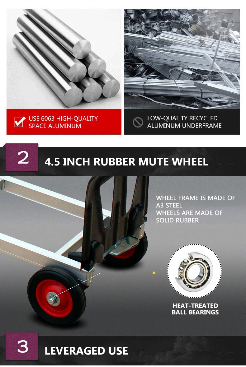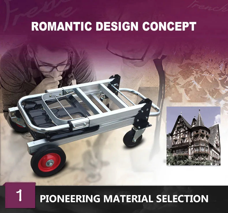 100KG Car Roll Luggage Cart Portable Luggage Trolley Folding Hand Truck Mute Flat Heavy Duty 4-wheel Foldable Shopping Cart