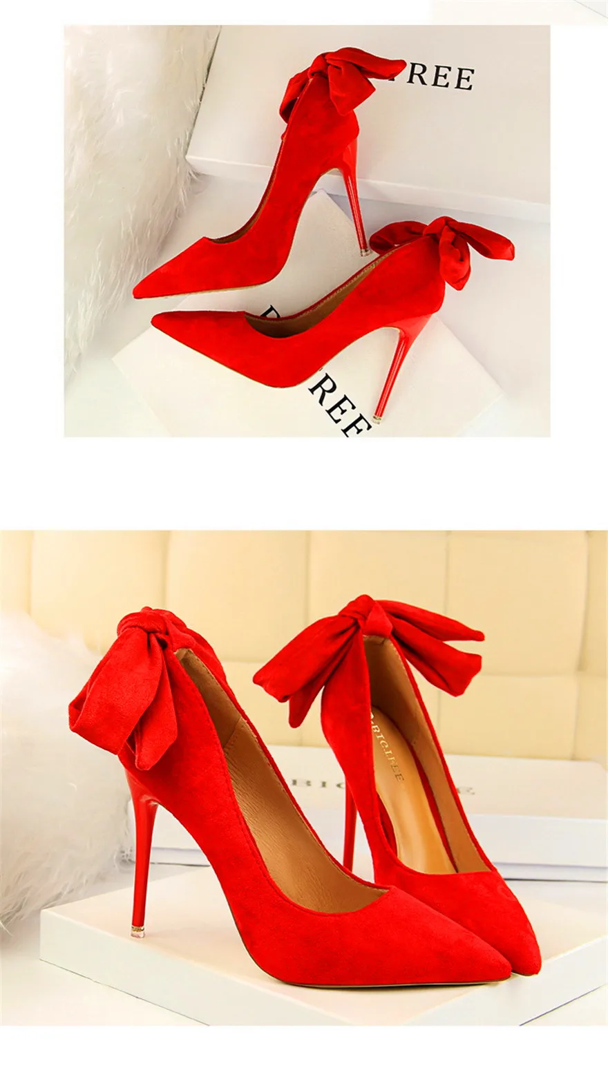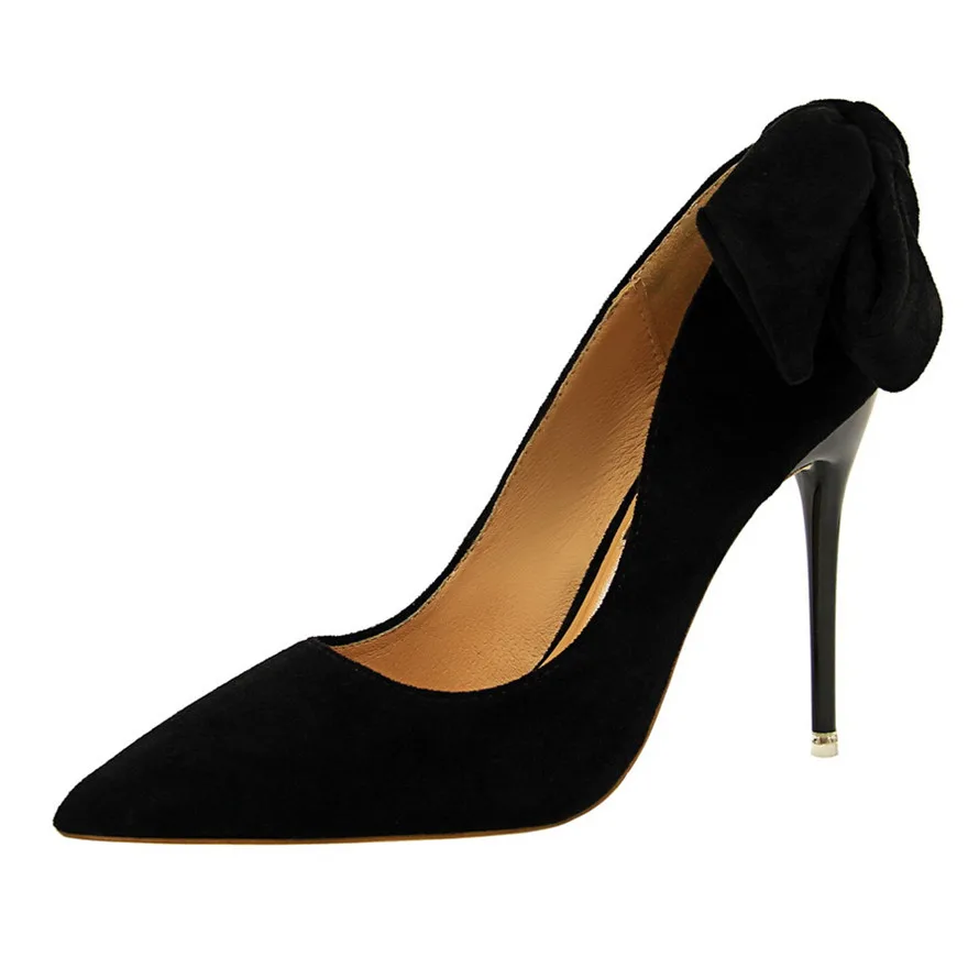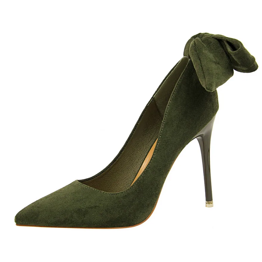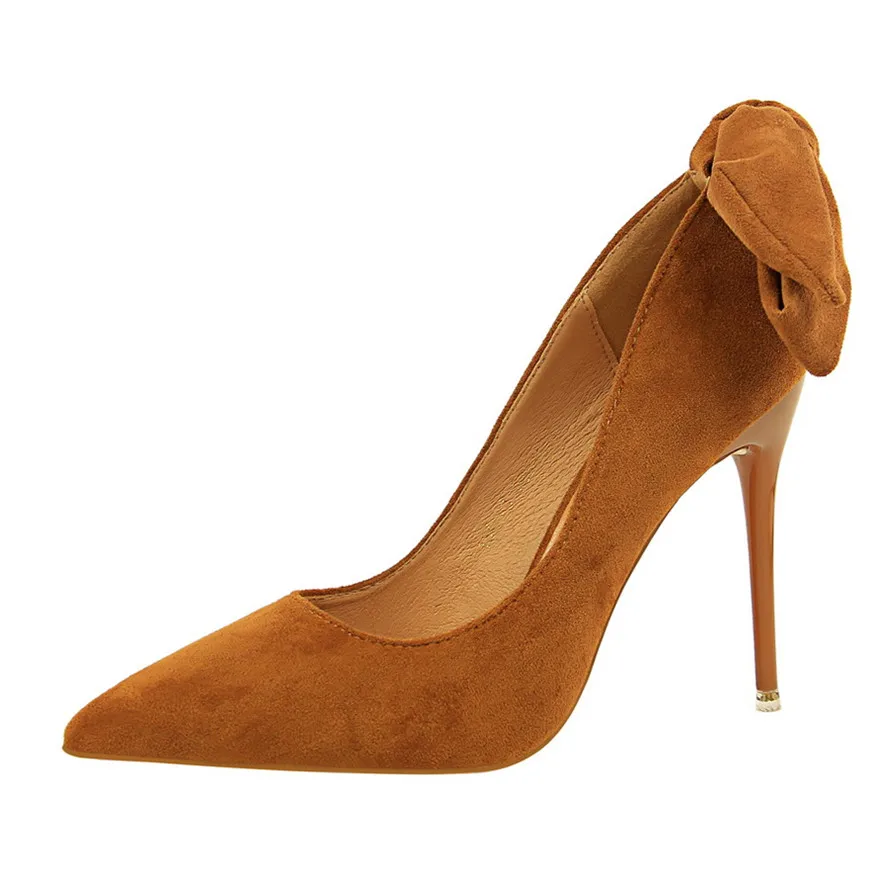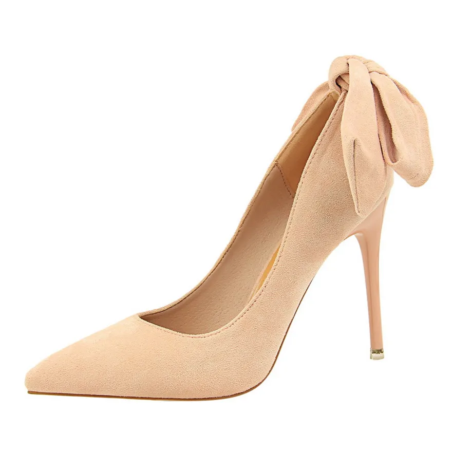 New Classic Ankle Lace-Up Bowknot Woman Shoes Solid Flock Shallow High Heels Shoes Party Shoes Fashion Women Pumps 6 Colors