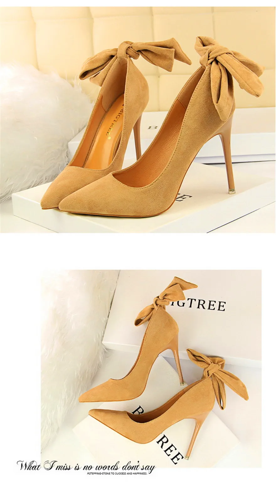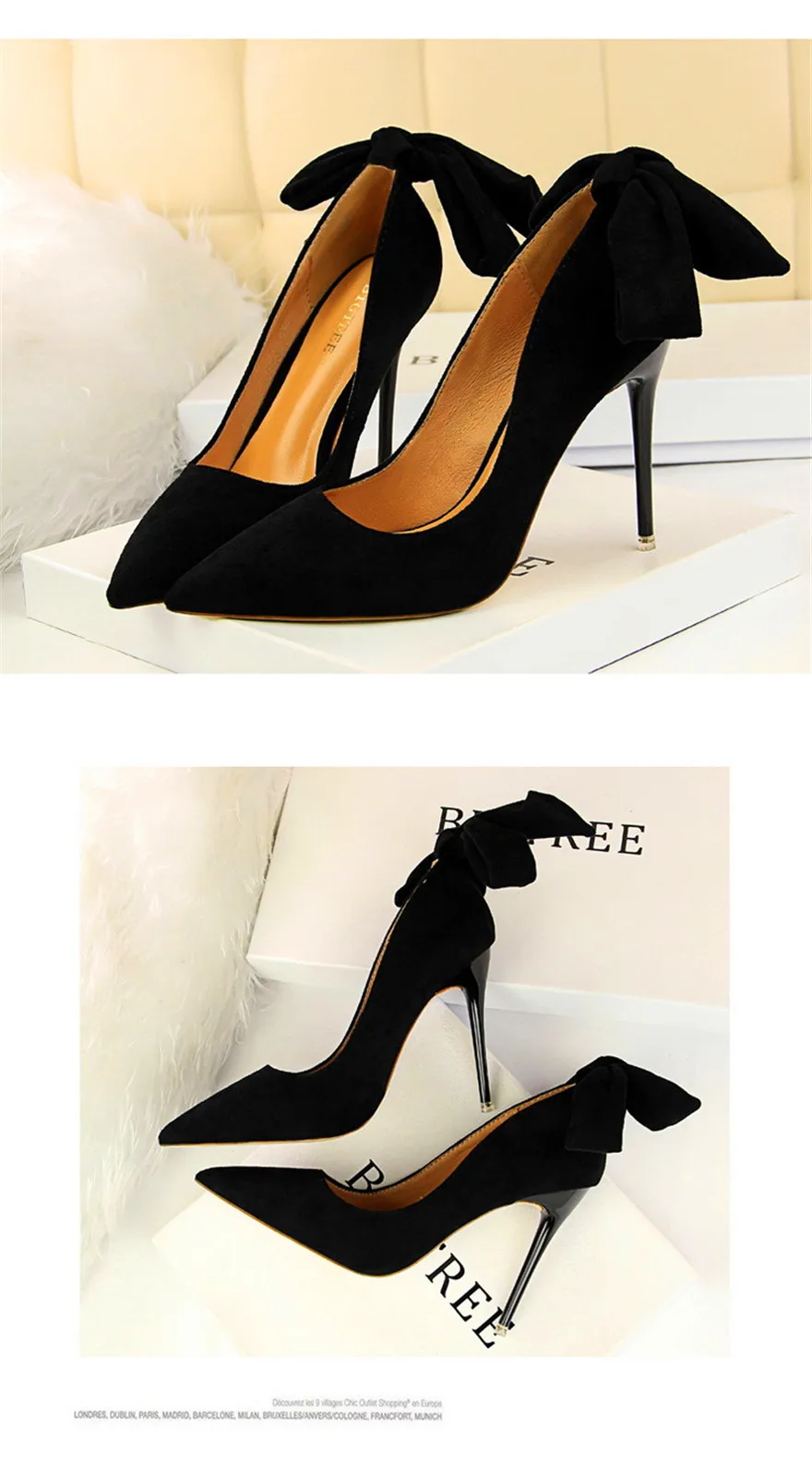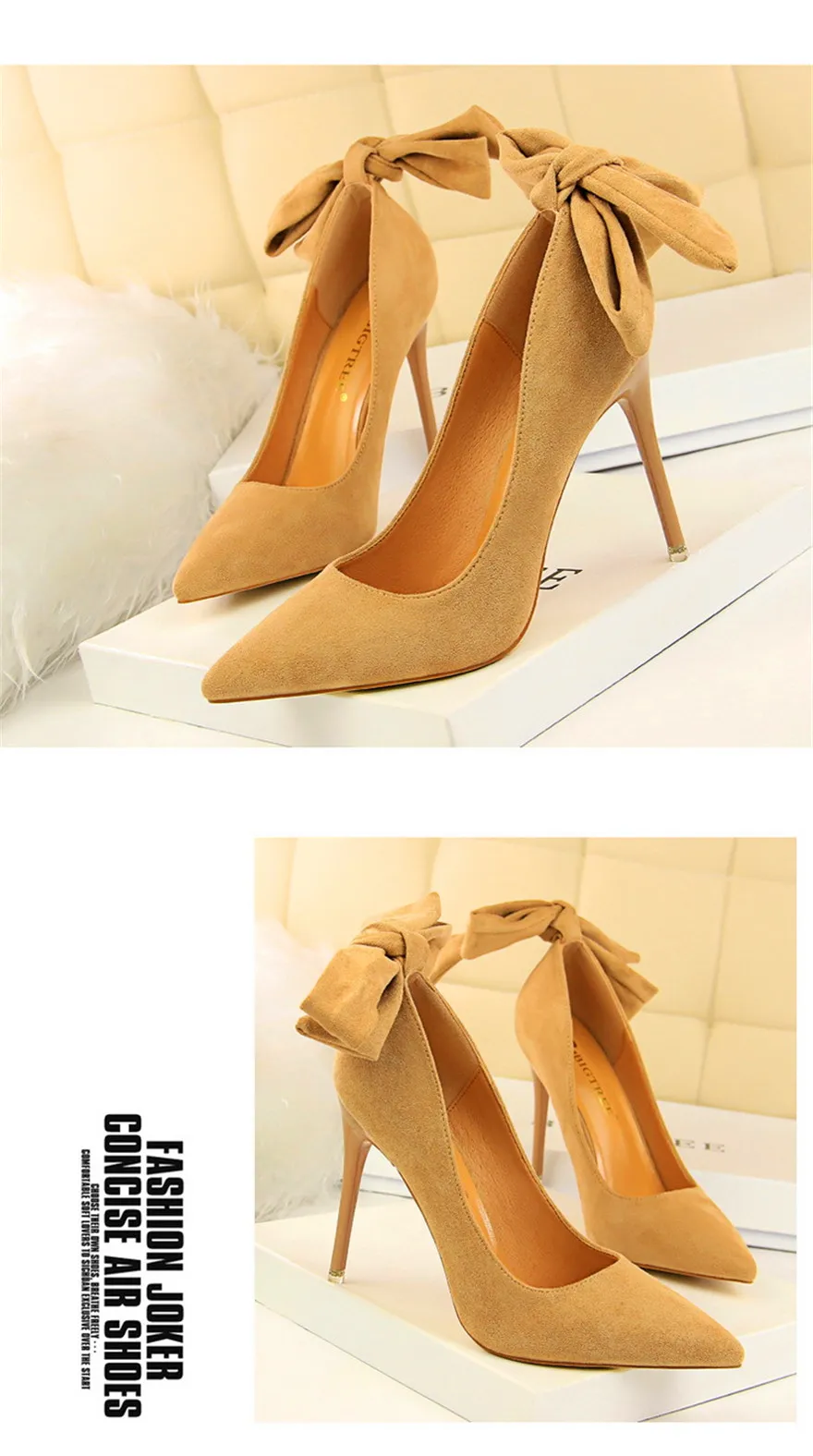 New Classic Ankle Lace-Up Bowknot Woman Shoes Solid Flock Shallow High Heels Shoes Party Shoes Fashion Women Pumps 6 Colors
