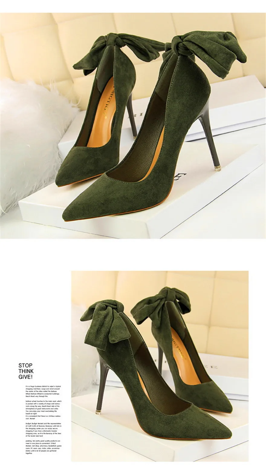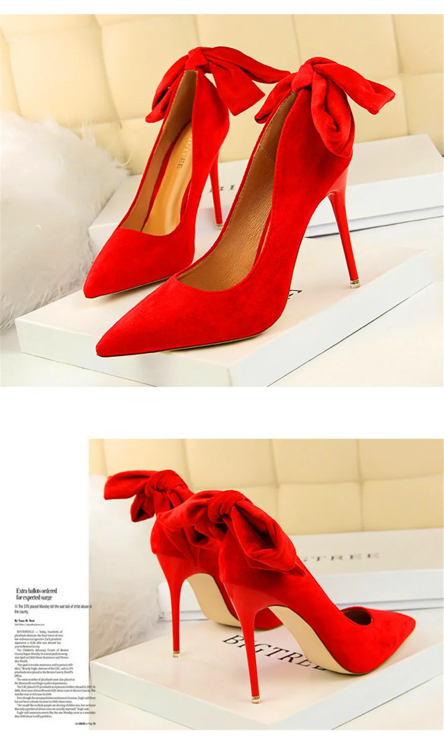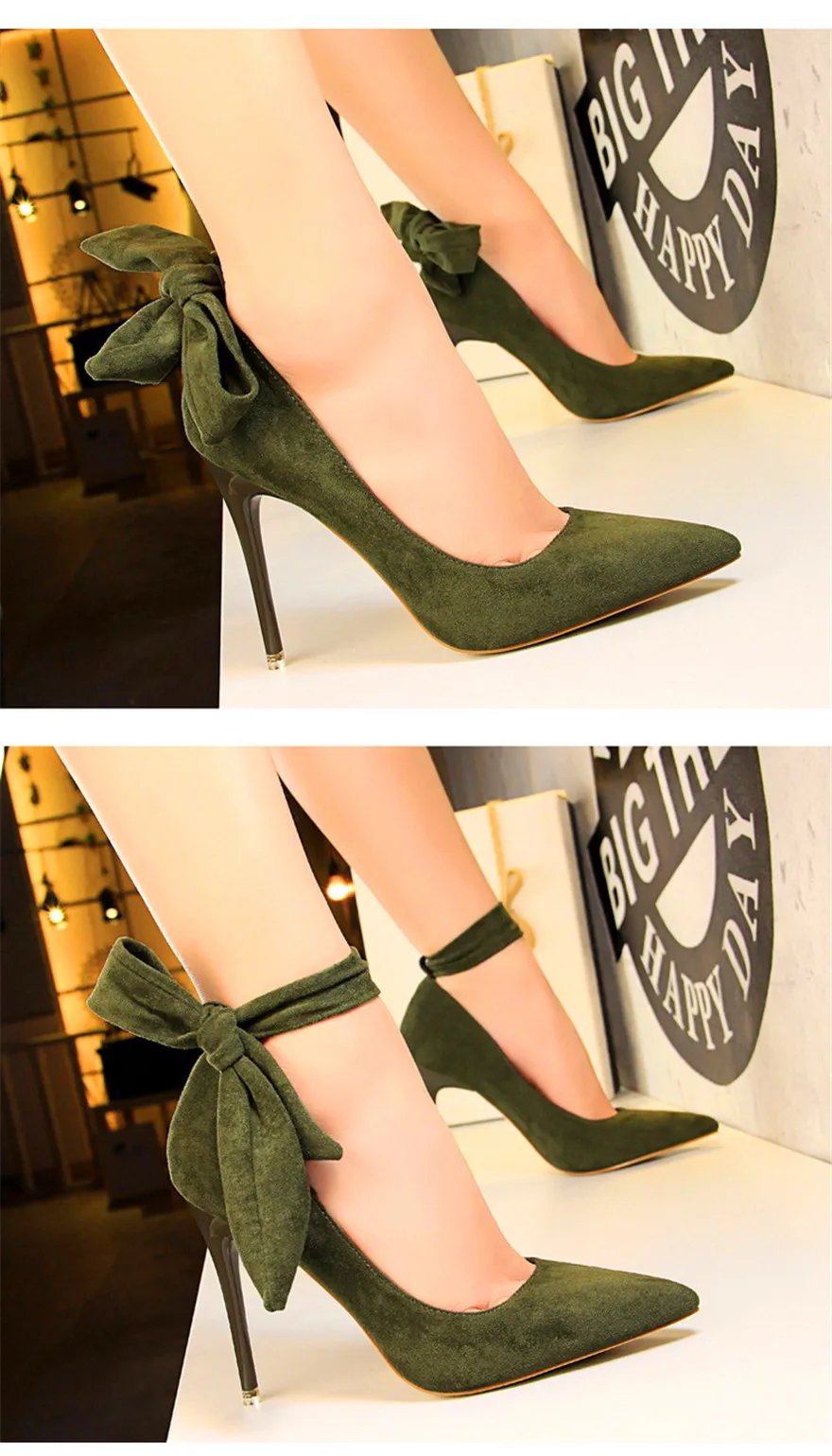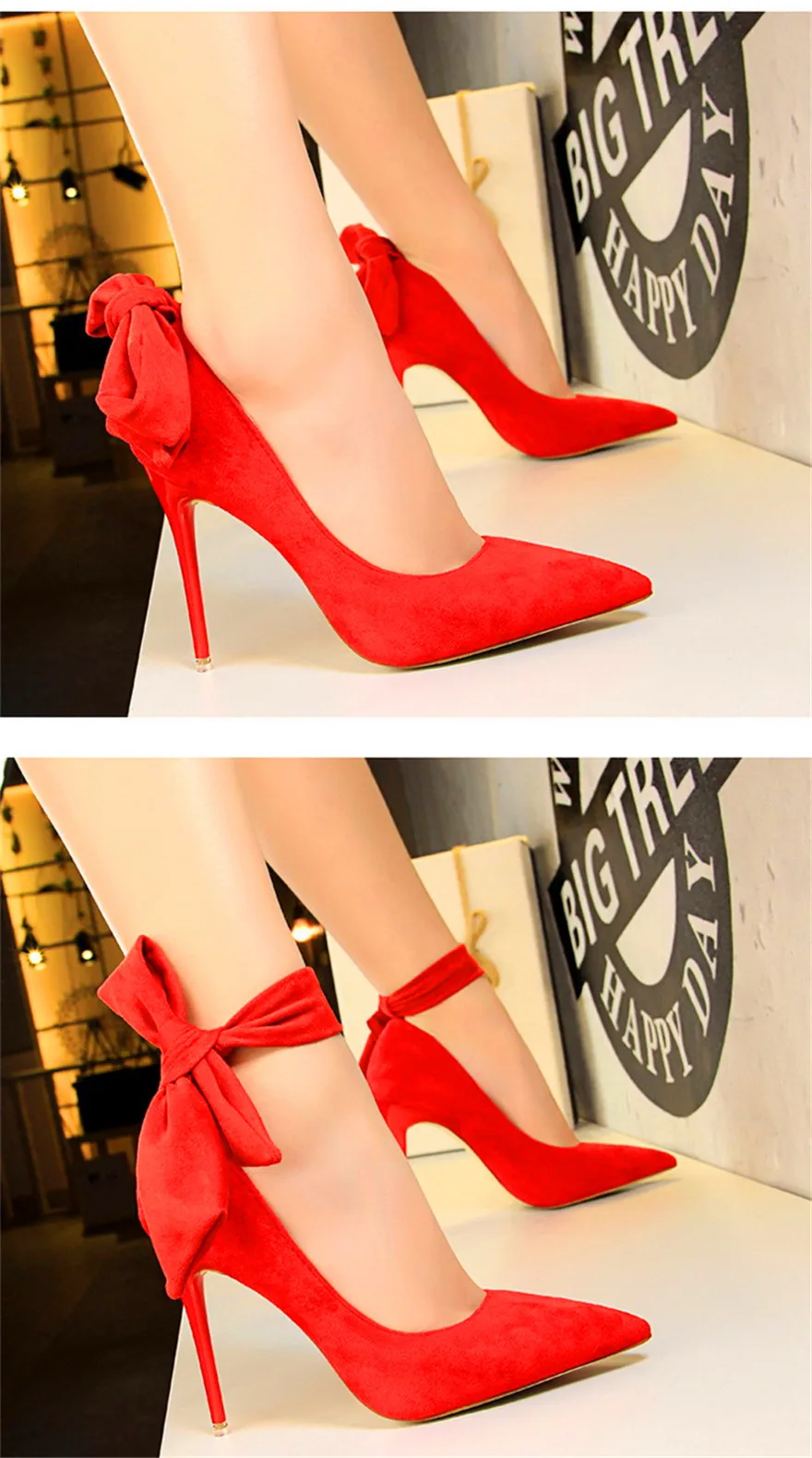 New Classic Ankle Lace-Up Bowknot Woman Shoes Solid Flock Shallow High Heels Shoes Party Shoes Fashion Women Pumps 6 Colors