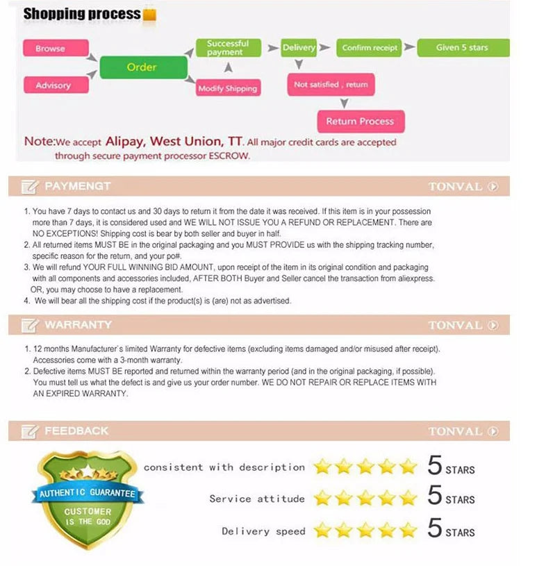 All items are checked and packed in good condition before dispatch. If you find any defect in our items,please contact customer service within 7days of receipt item.Return items must be NOT-Used or have any sign of abuse or intentional damage.Buyer is responsible for all return shipping charges.
