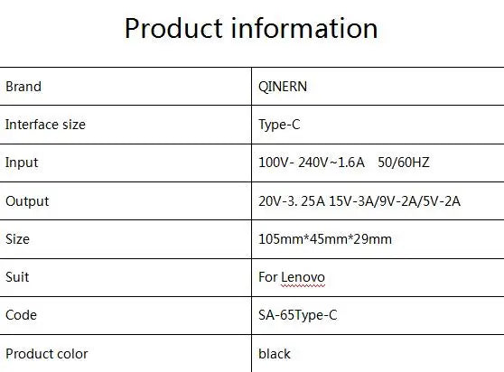 Such as 20V 3.25A 、19V 3.42A、19V 2.37A....