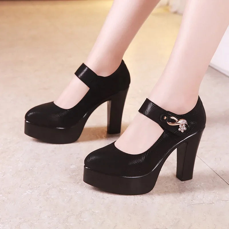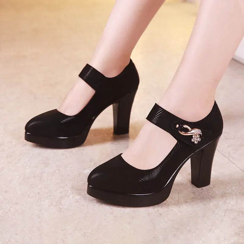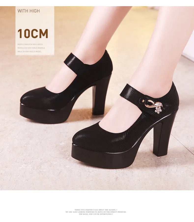 6cm 8cm 10cm Block Heel Platform Pumps Women Shoes 2024 Spring Floral Black High Heels Shoes Ladies Elegant Office Shoe 41 42 43