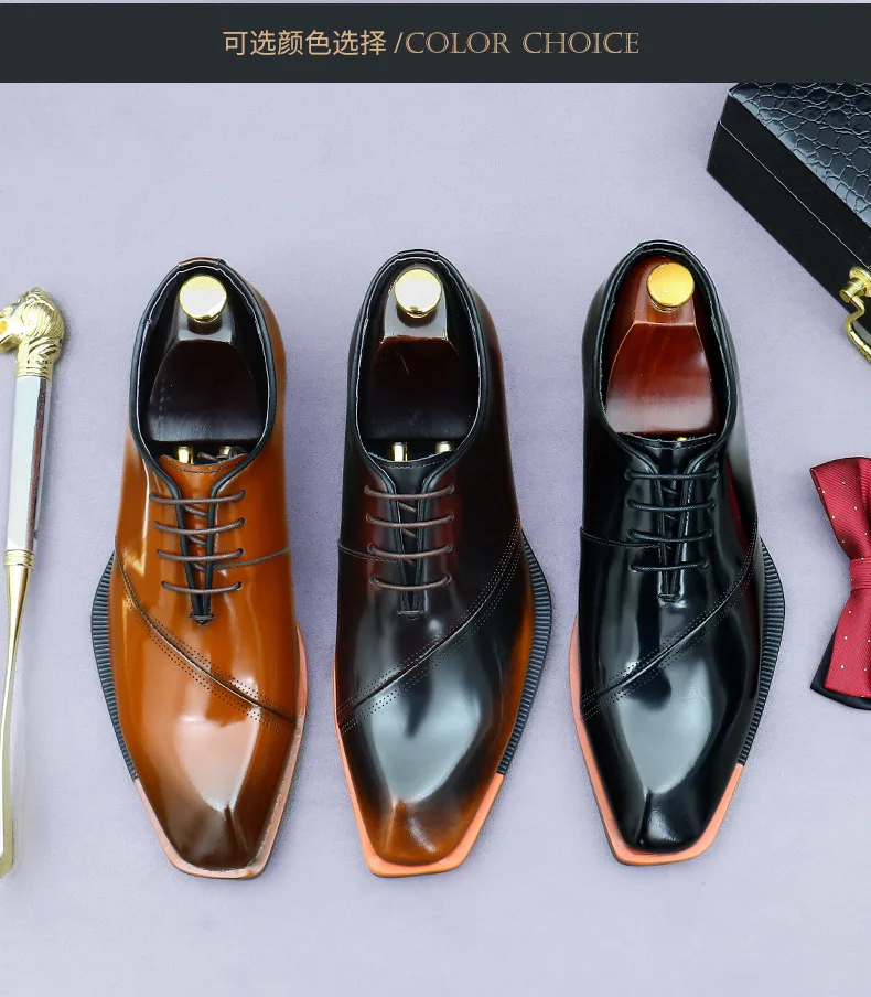 Brand Original Mens Oxford Dress Shoes Genuine Leather Brown Lace-up Business Wedding Formal Shoes Plus Size 38-46