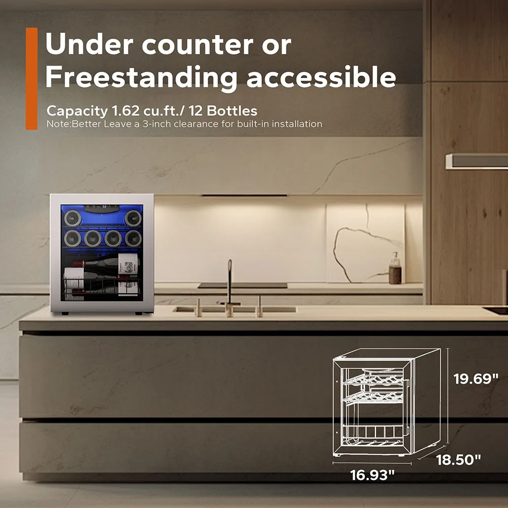 Transform your wine storage with the Ca'Lefort Wine Refrigerator (Model: CLF-WSJC46), a perfect blend of style, functionality, and convenience. Designed to accommodate up to 12 bottles, this compact fridge is ideal for any spacebe it your home, office, or dorm room.