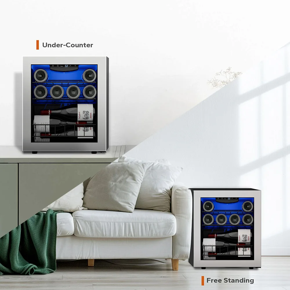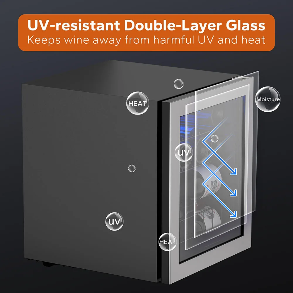 With dimensions of 18.5 x 16.9 x 19.7 inches and finished in sleek stainless steel, this fridge fits seamlessly into any environment. The double-layer anti-UV glass door protects your wine from harmful rays, ensuring optimal preservation.