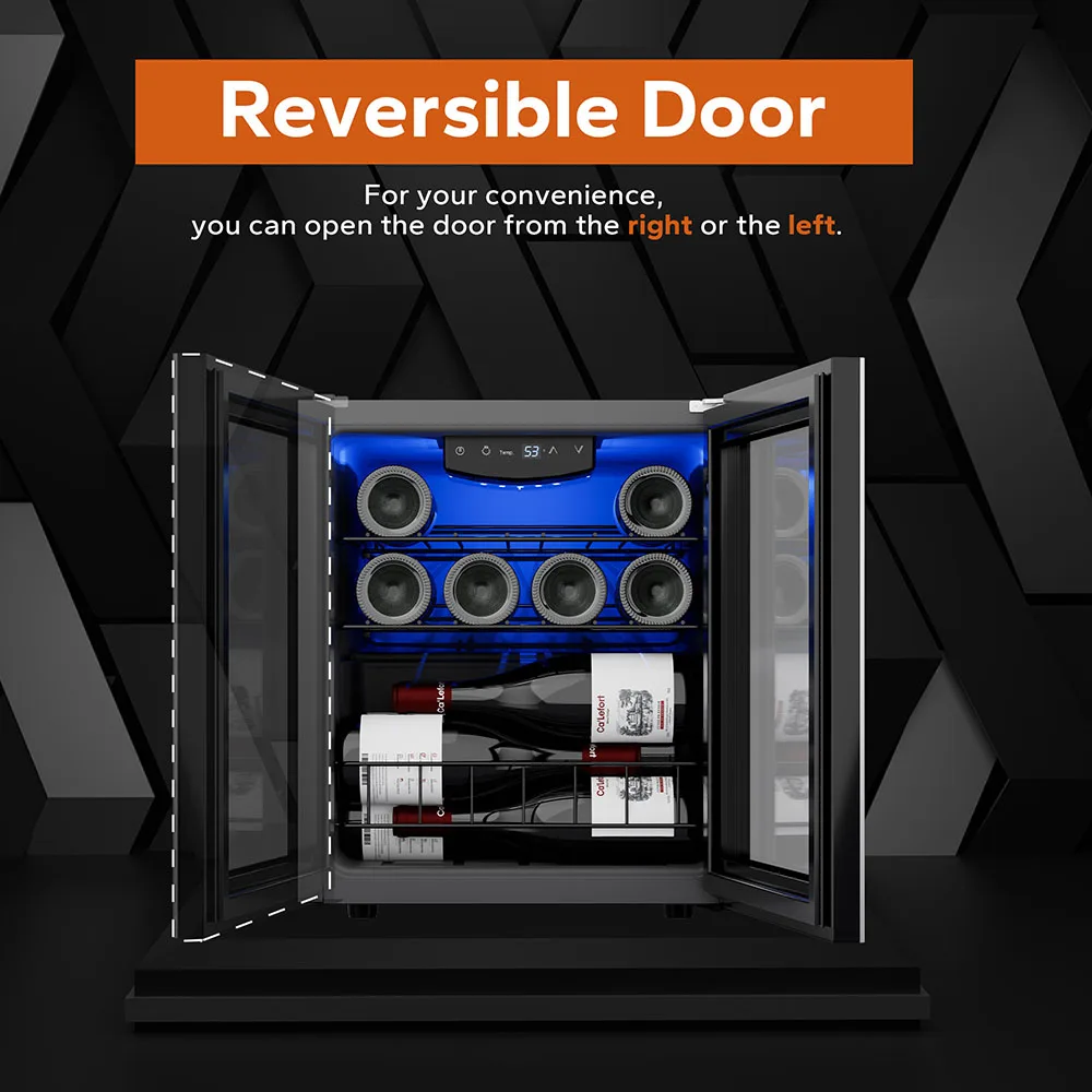 Ca’Lefort Wine Refrigerator Cooler - 12 Bottle Mini Fridge, Freestanding Wine Cellar with Elegant Glass Door for Home Use