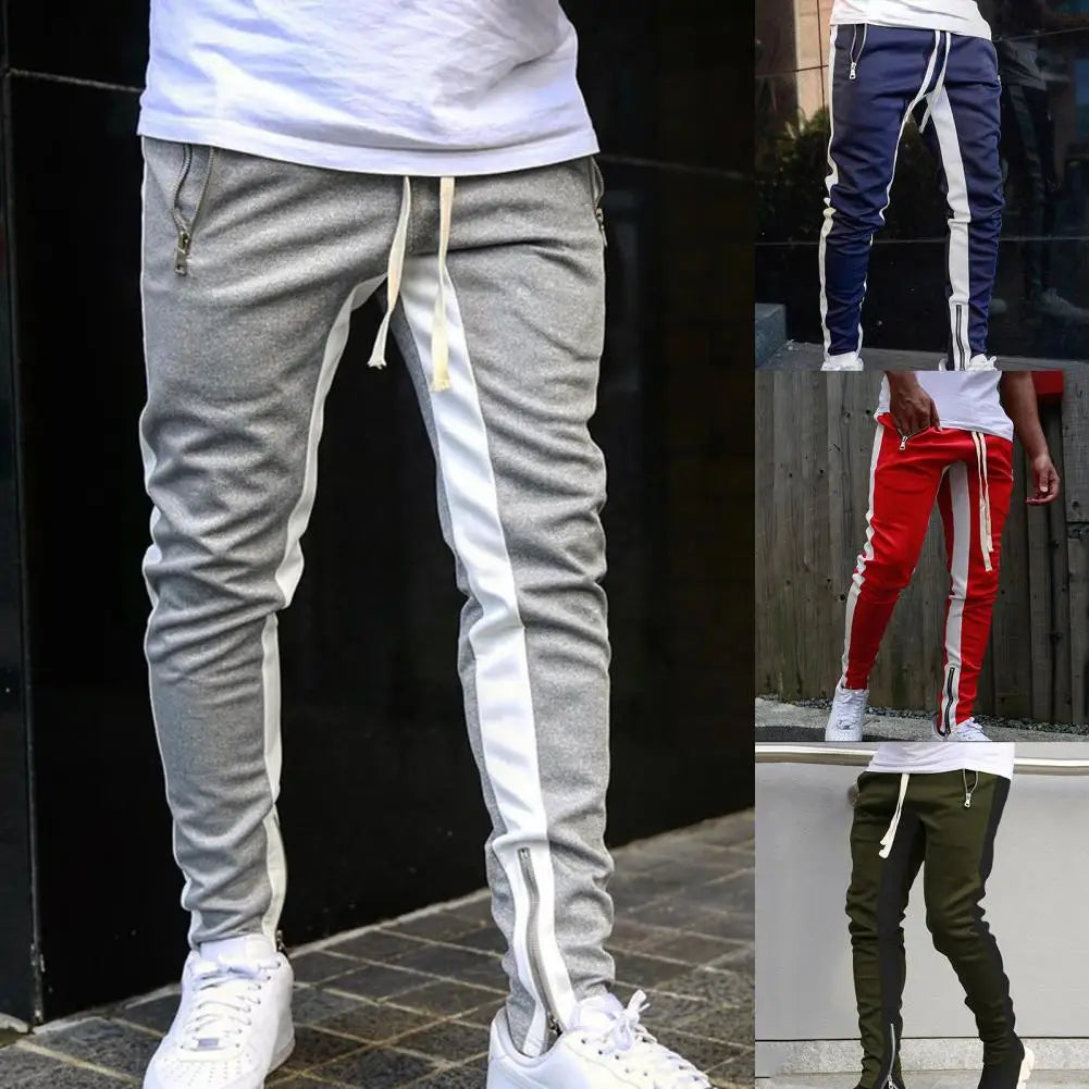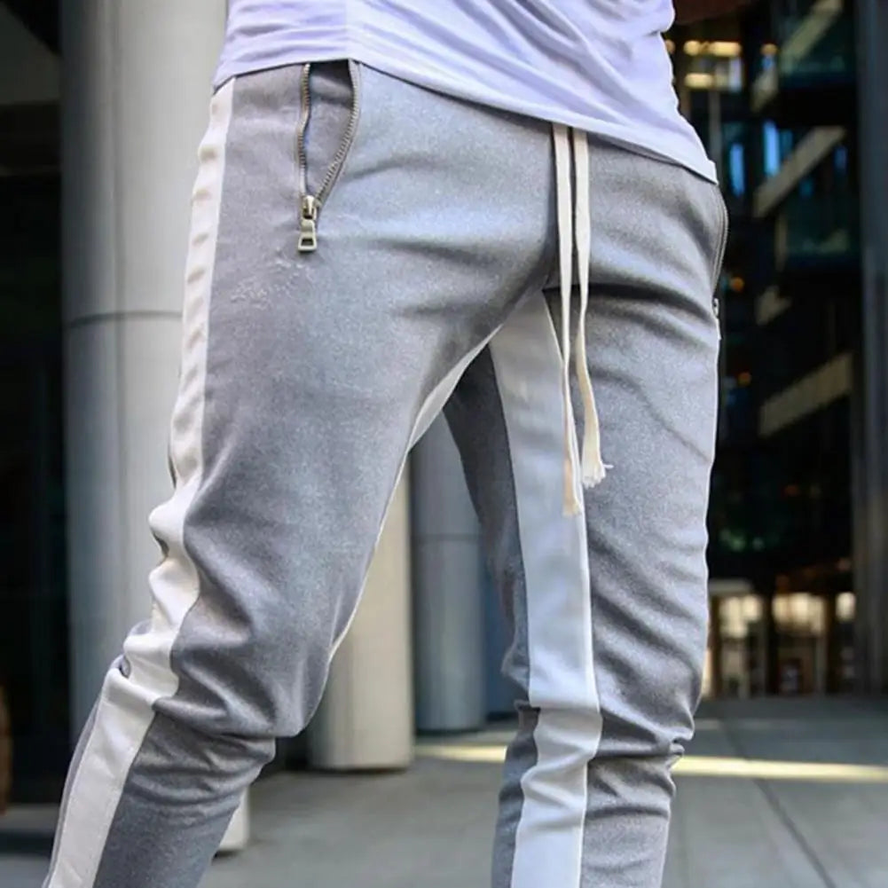 Casual Men Sweatpants Contrast Colors Elastic Waist Male Pants Drawstring Breathable Autumn Trousers for Jogging
