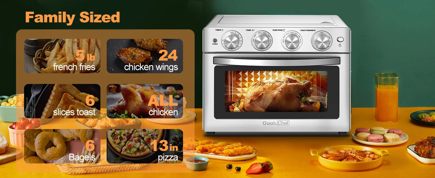 Chef Air Fryer Oven 26 QT, Big Air Fryer, Toast Oven with Bake, Roast, Pizza, Convection Oven, Easy to Use & Clean, 6 Slice Toas