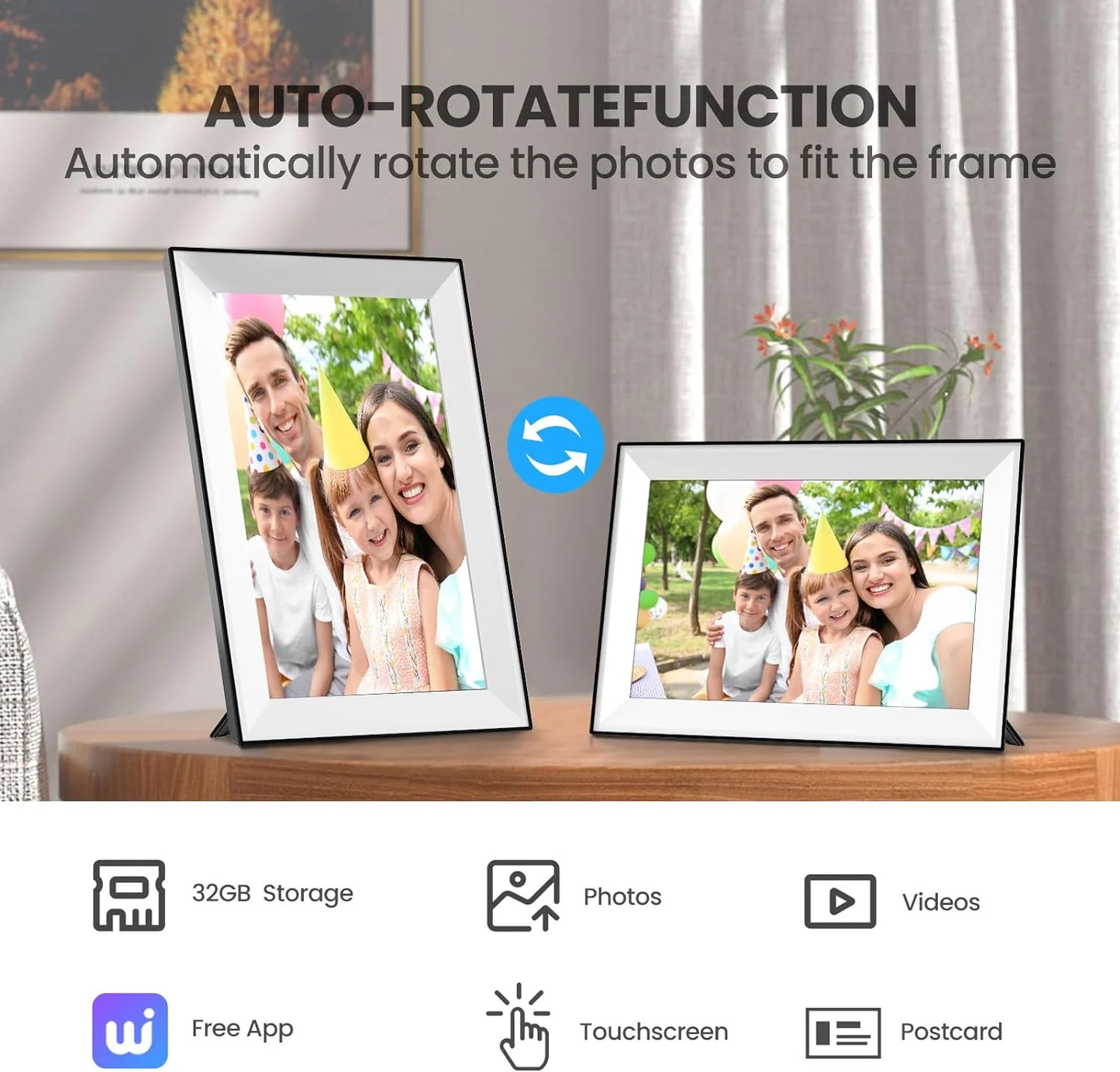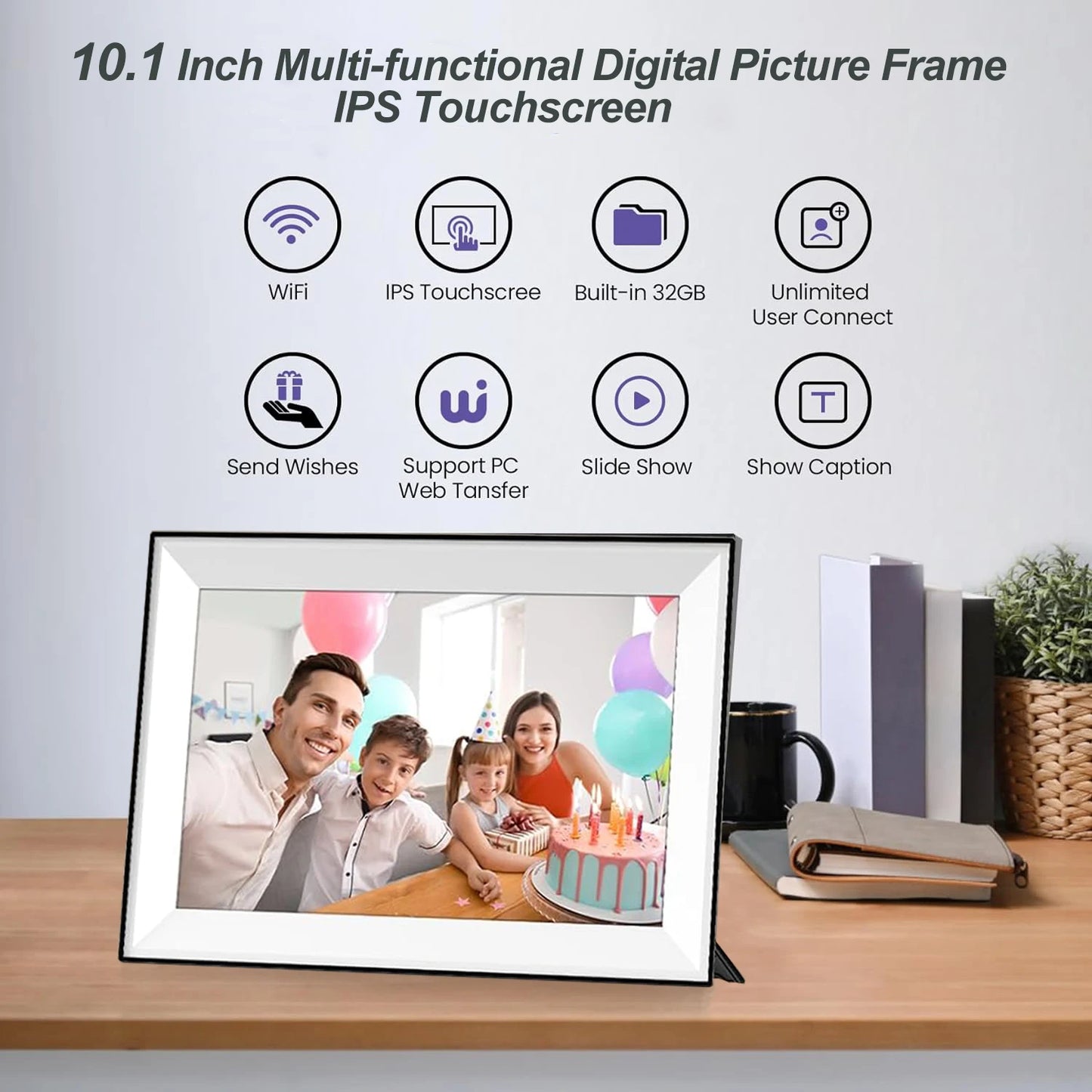 Digital Picture Frame 10.1 Inch 32GB Smart WiFi Digital Photo Frame with 1280x800 IPS HD Touch Screen Wall Mountable
