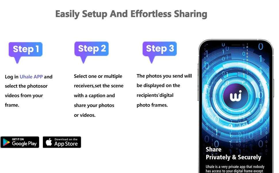 【Instant Wireless Sharing】Connect the electronic frame to home WiFi, and then download the free Uhale App on your phone (download from Android or iOS). You and your family and friends can share photos or videos to the photo frame through free APP, without any subscription fee. Uhale can send 50 pictures and 30 seconds of video in one go!The TF card allows for complete video playback.