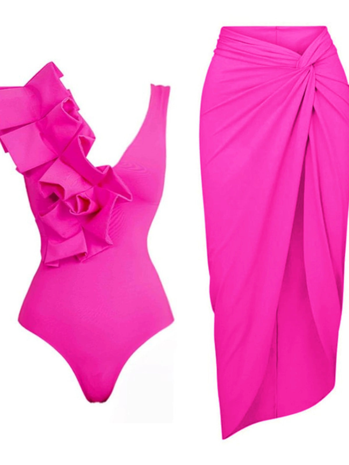 European and American Foreign Trade Conservative Flying Edge Belly Covering Slimming Sexy Wrap Skirt Hot Spring Beach One-Piece Swimsuit Overskirt Two-Piece Suit