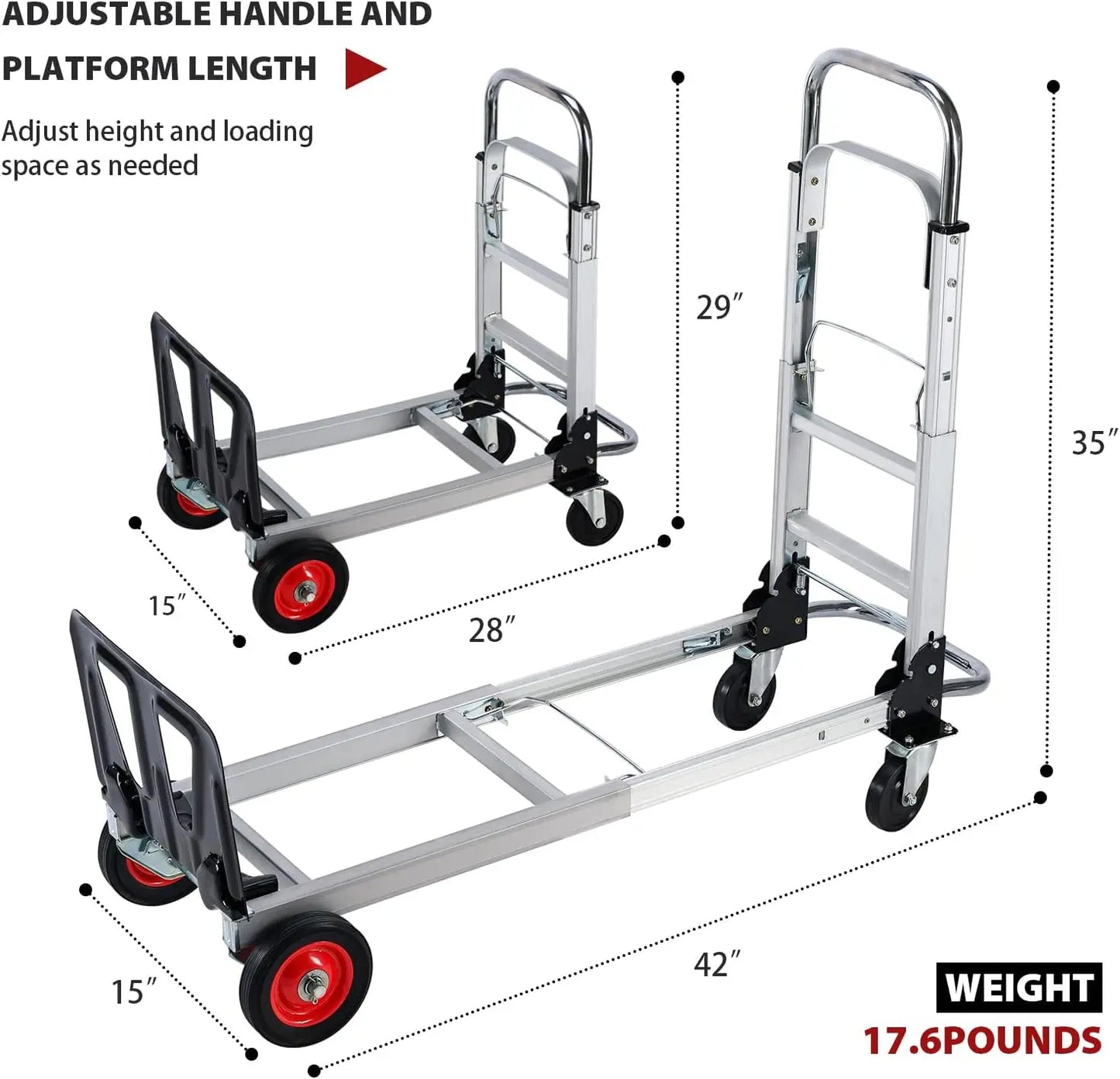 Hand Truck Dolly Heavy Duty 440lbs Capacity 2 in 1 Convertible Folding Hand Truck with Pneumatic Wheels and Telescopin