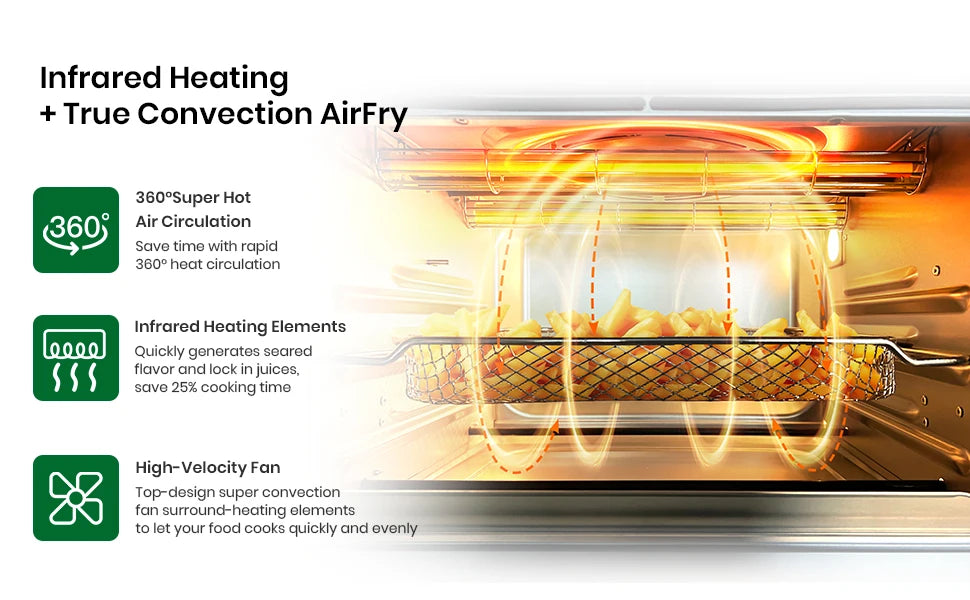 VAL CUCINA 10 IN 1 XL Air Fryer Toaster Oven 10 Cooking Presets with Infrared Heating + True Convection AirFry