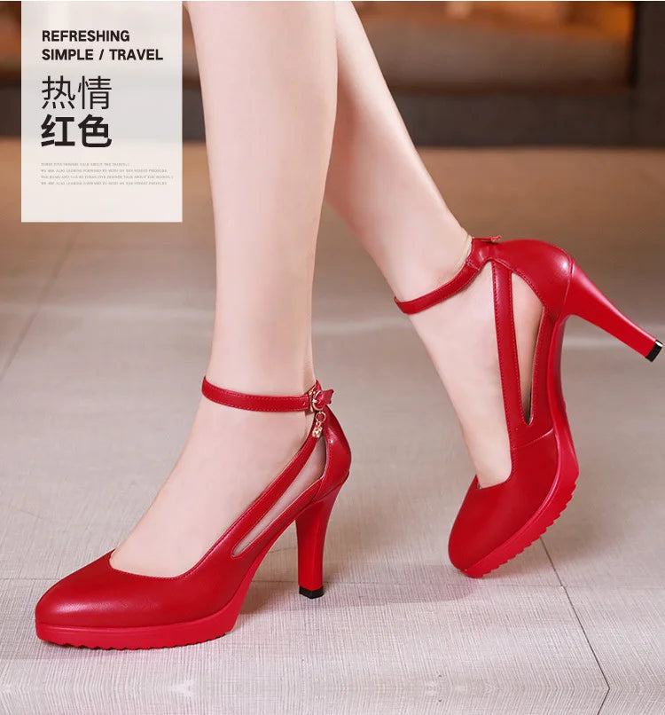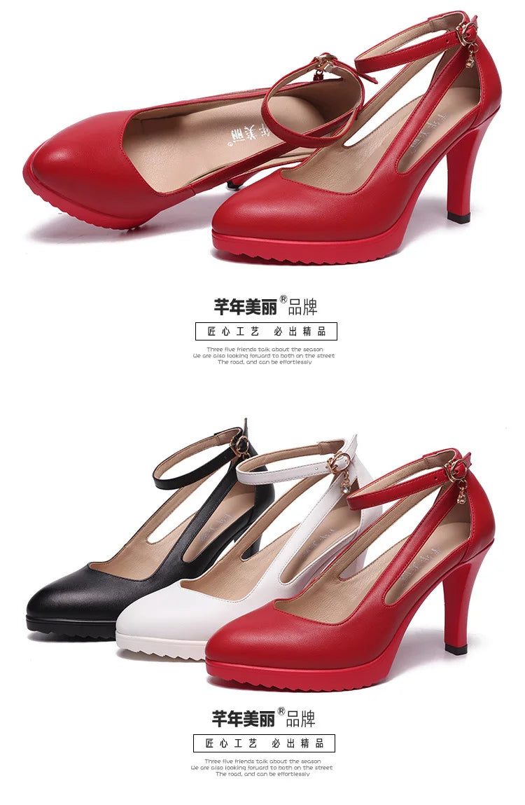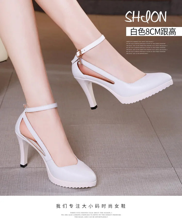 high quality leather shoe for women 8cm high heel platform point toe 32 33 42 43 elegant and fashion dress shoe black red white