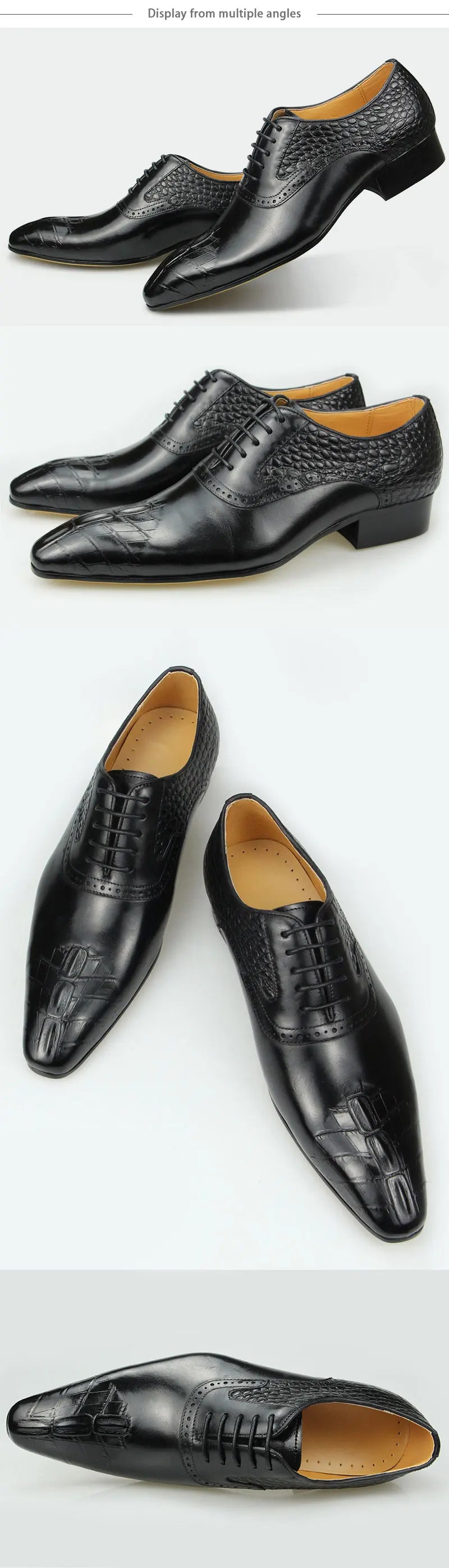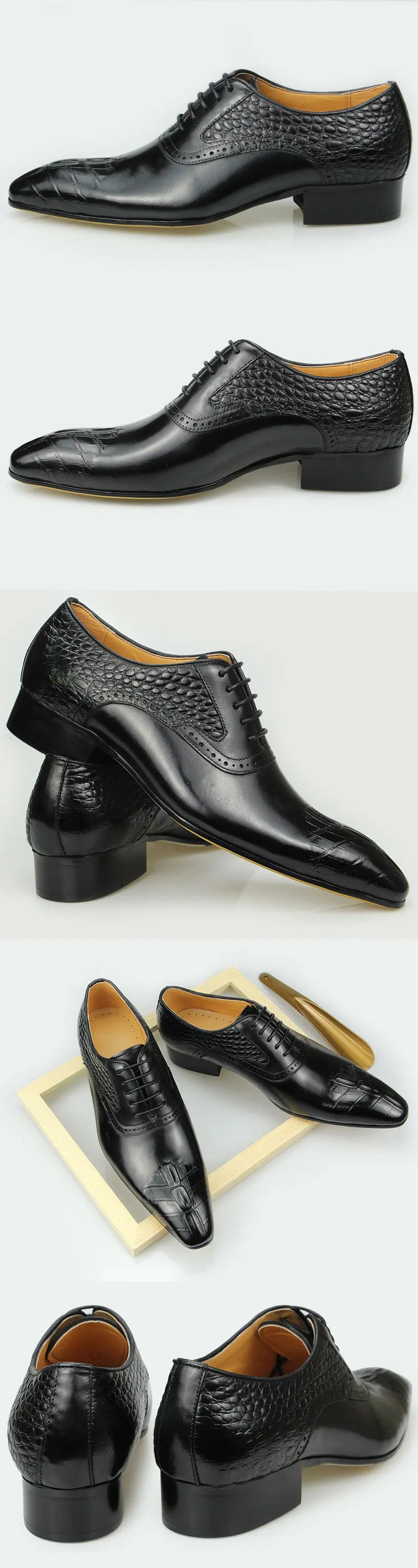Italy Men's Shoes Prince Classic Modern Formal Oxford Wingtip Lace Up Dress Shoes Handmade Black Genuine Leather Free Shipping