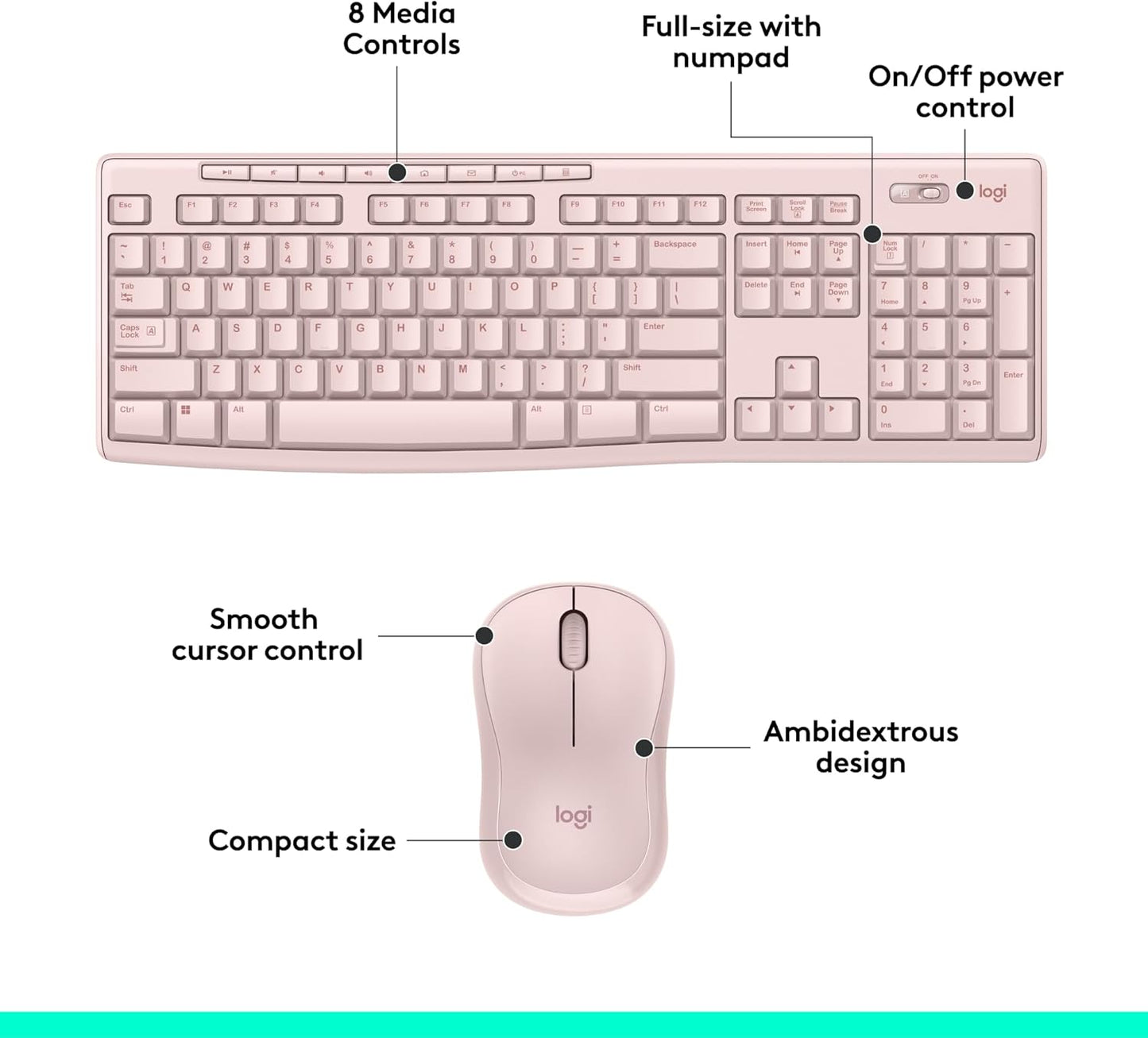 - Plastic parts in MK270 include certified post-consumer recycled plastic: 49% for the mouse and 54% for the keyboard.