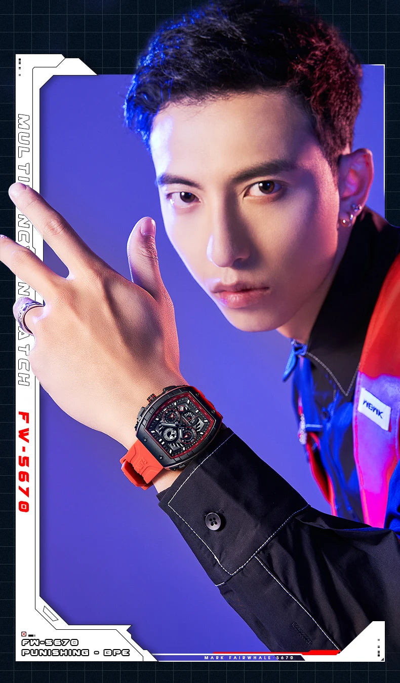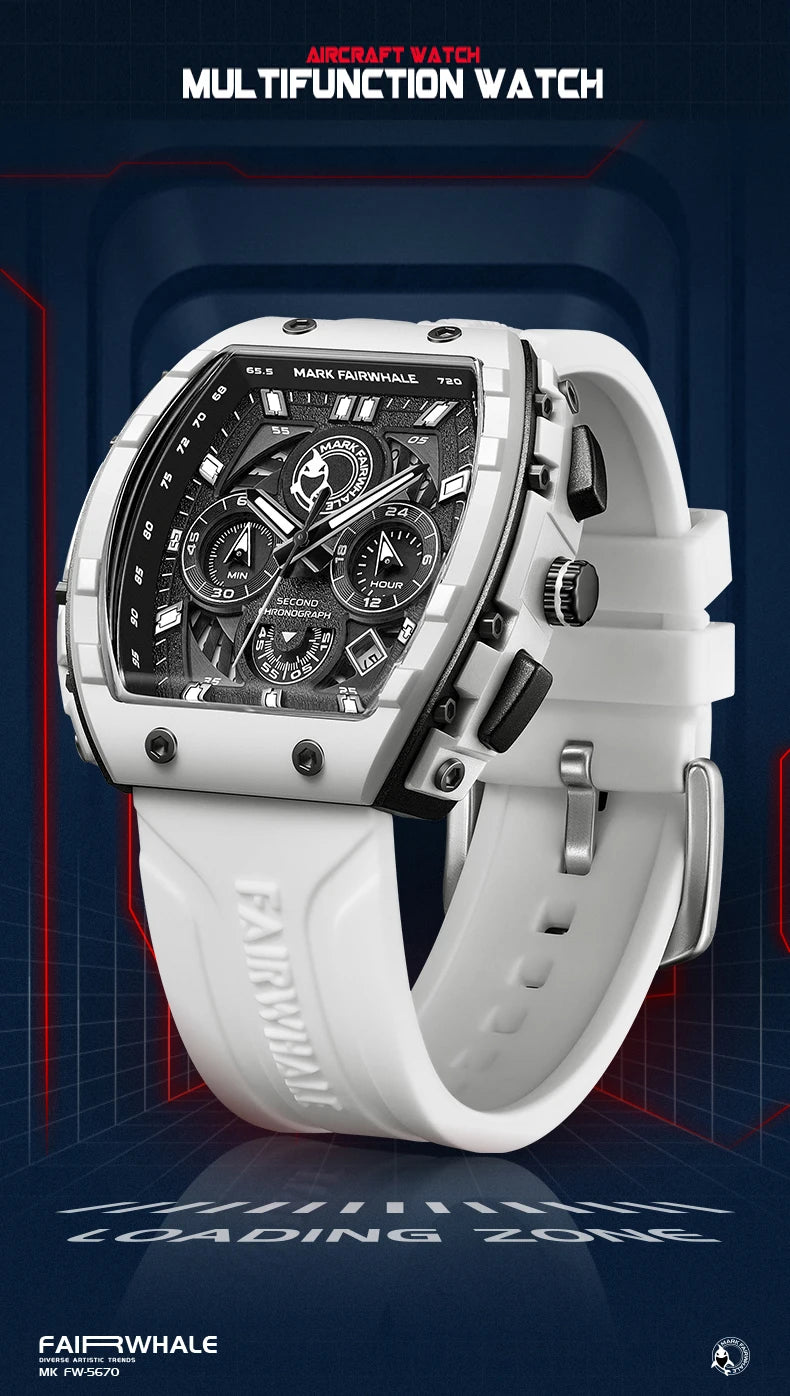Luxury Watch Mens Fashion Brand Mark Fairwhale Sports Silicone Strap Clock Tonneau Chronograph Quartz Wristwatch Boy Dropshiping