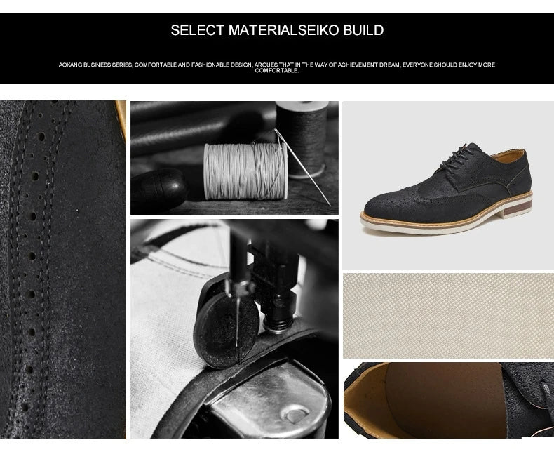 Man Derby Shoes Genuine Split Suede Leather Full Brogue Long Wing Dress Business Men Casual Comfortable Wedding Party Suits