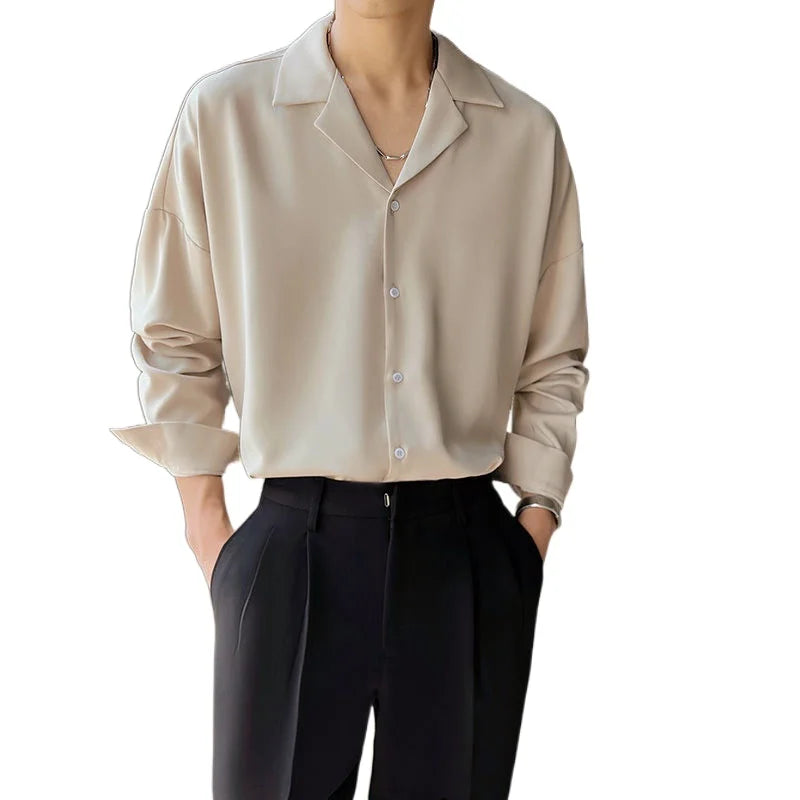 Mature Men Clothing Senior Spring Cuban Neck Shirt for Men Solid Color Fashion Loose Casual Drop Long Sleeve Men Dress Shirt