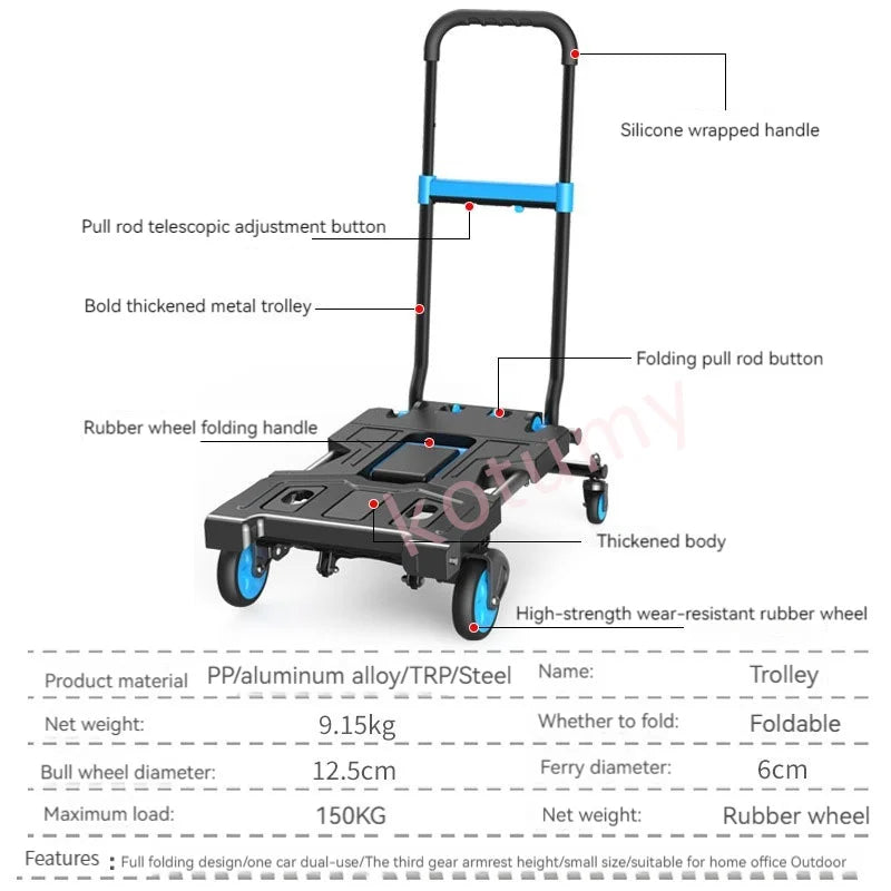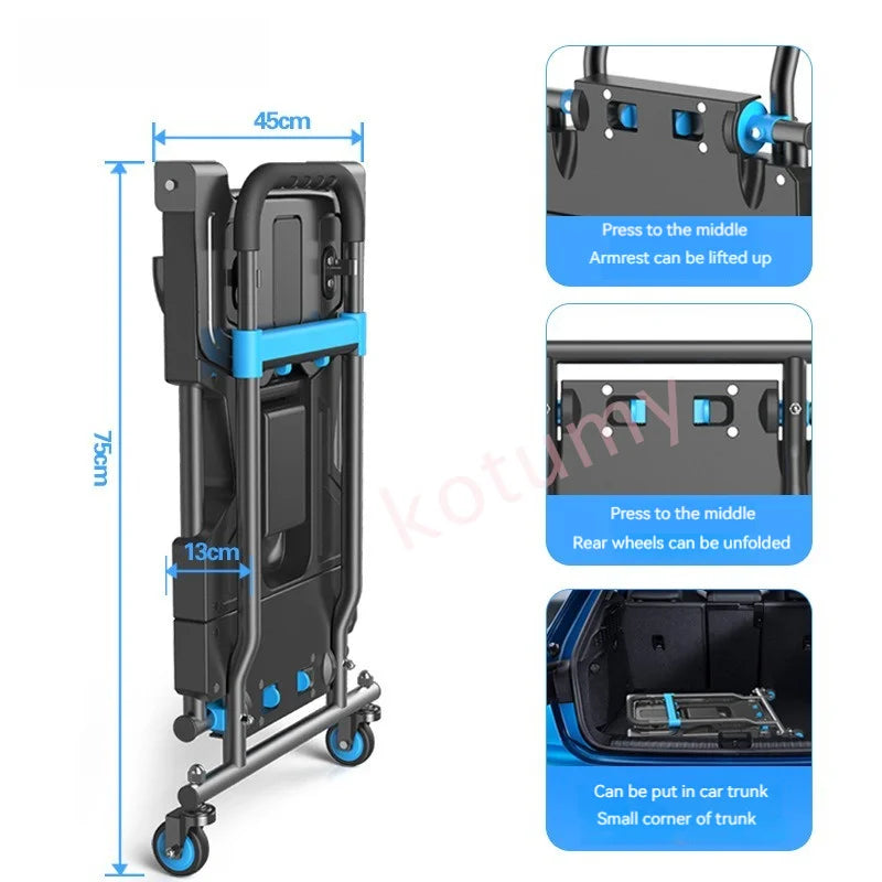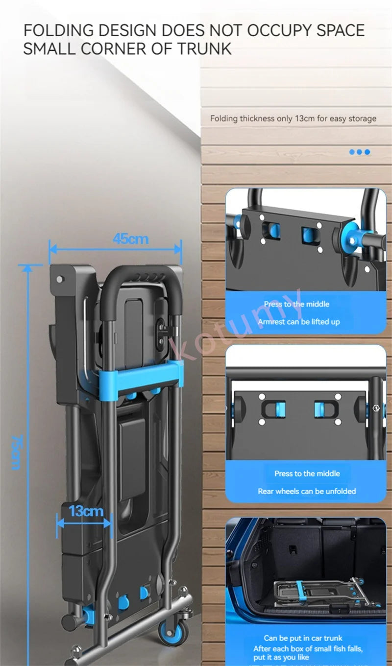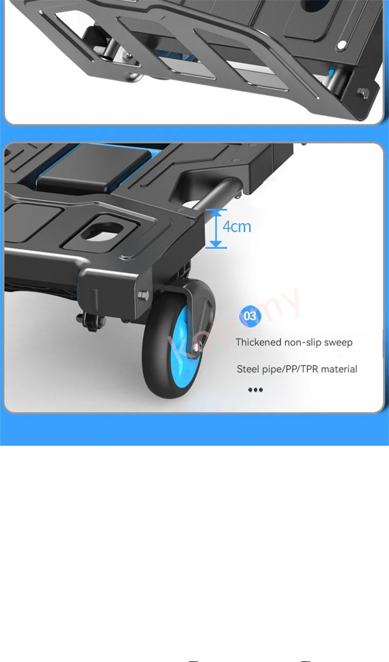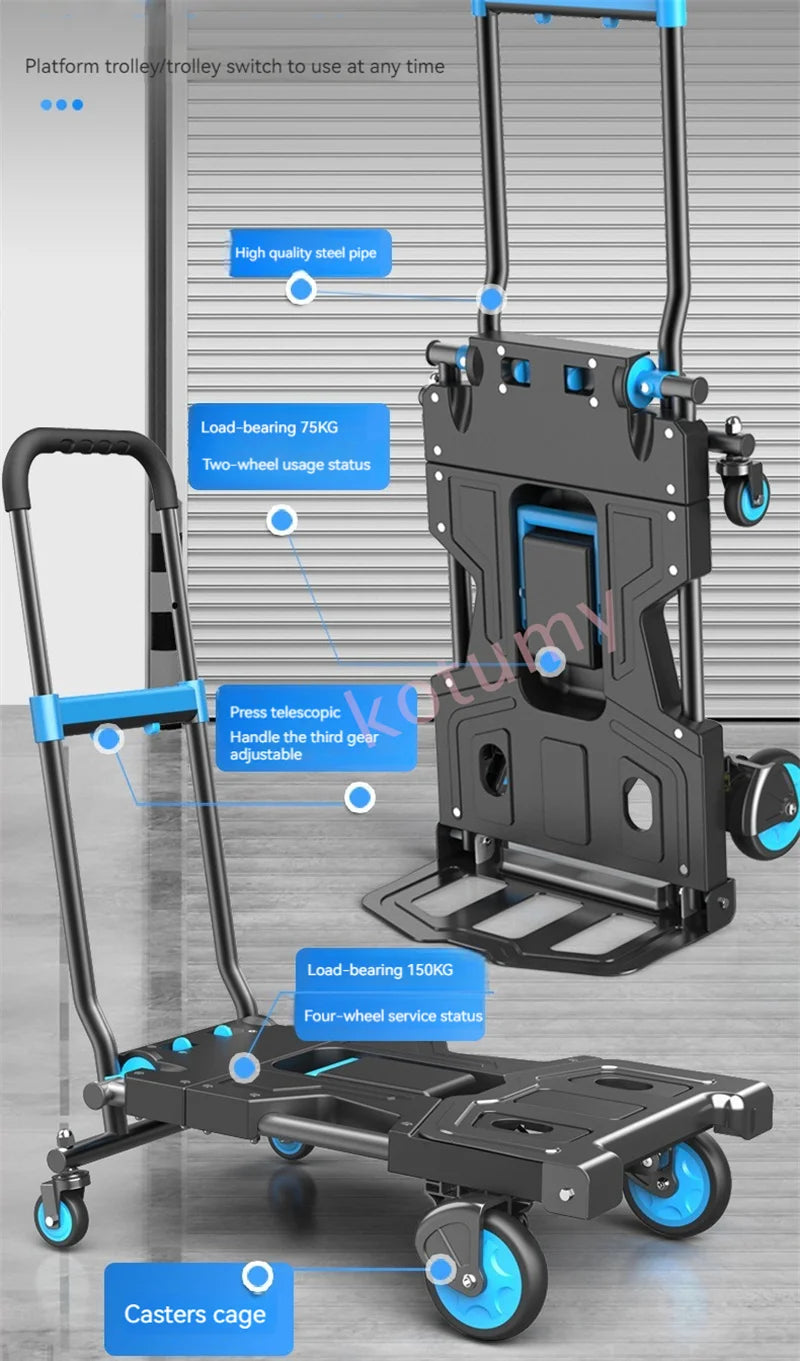 Multi-Position Folding Hand Truck,Four Wheel Luggage Cart 150kg,Pull Rod Adjustable Length,Four Wheel,Outdoor Camping Wagon