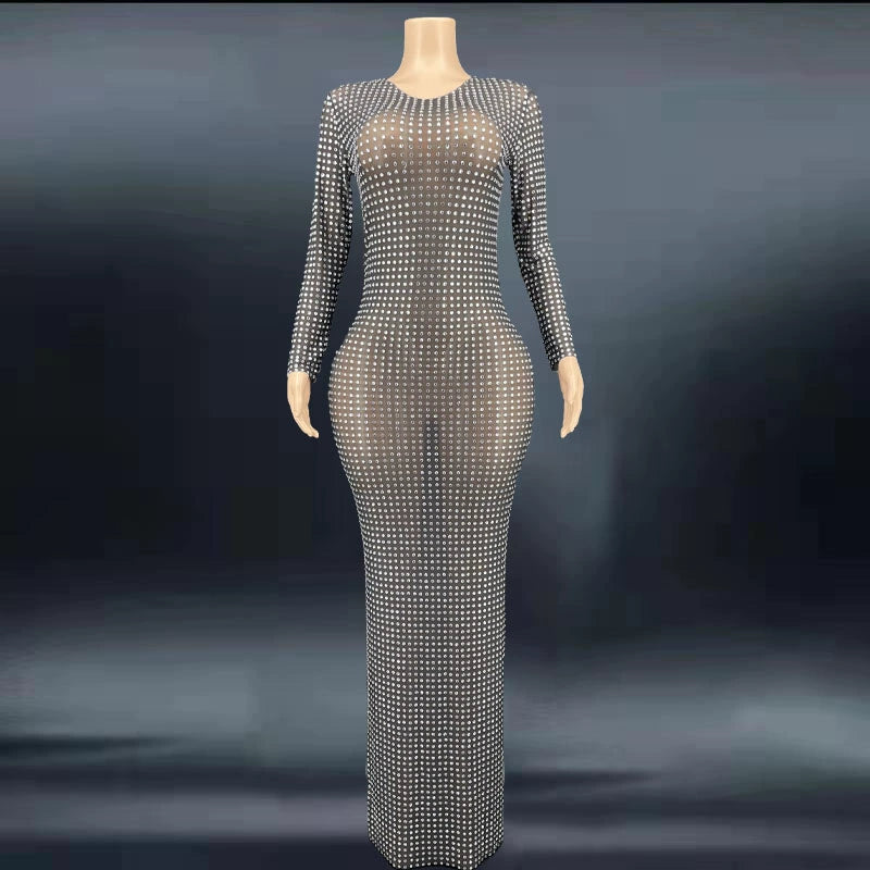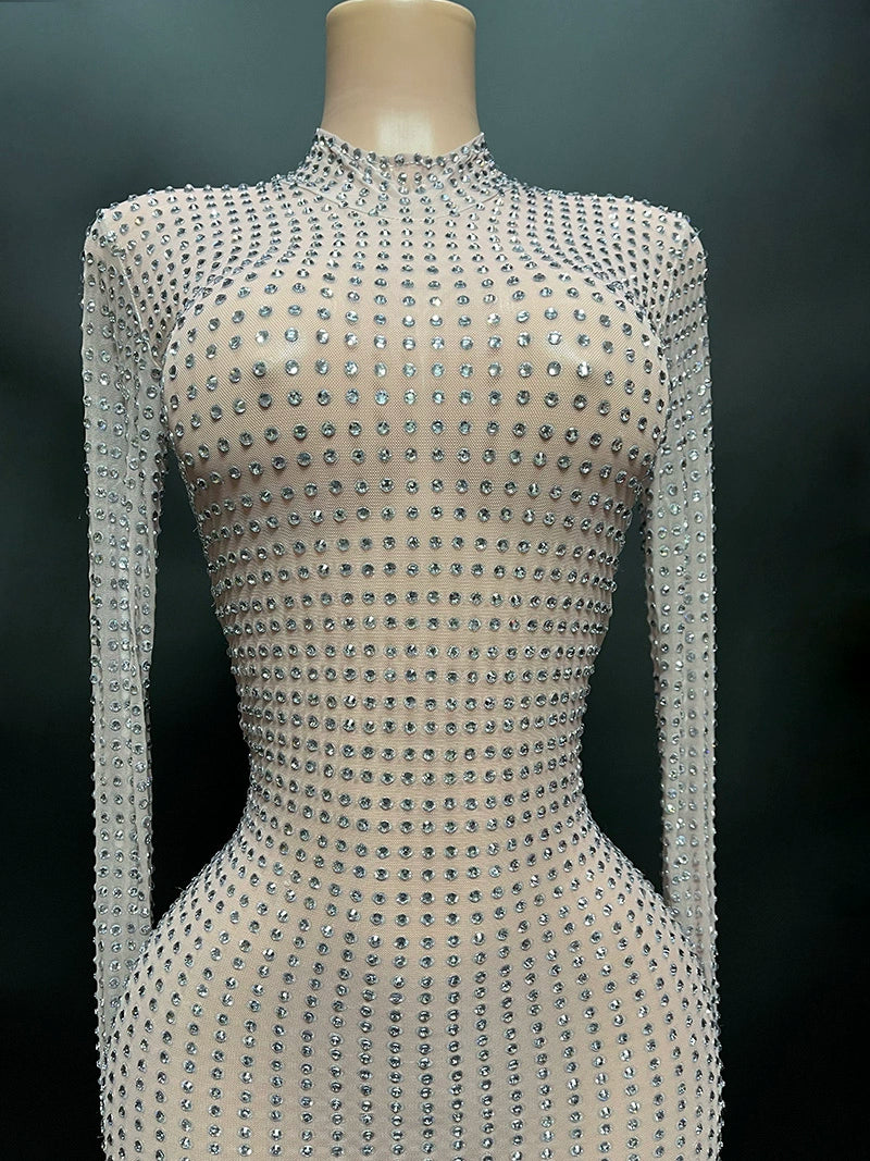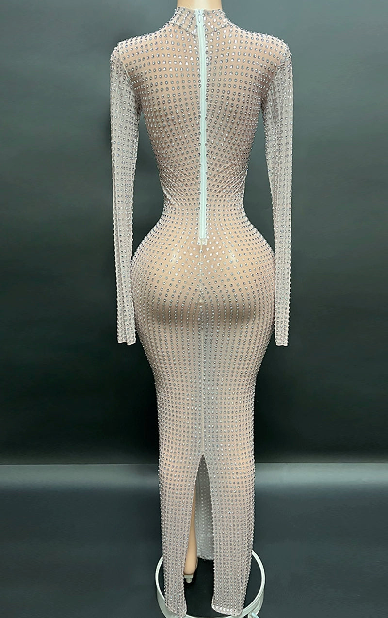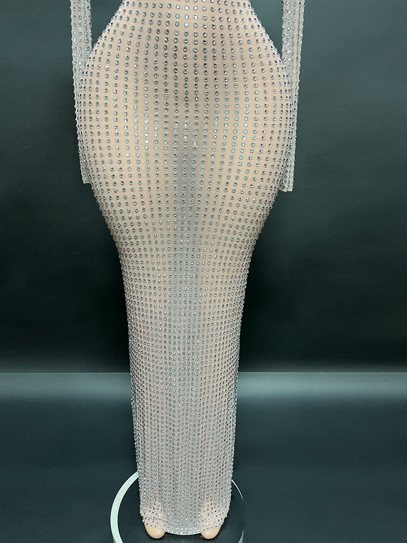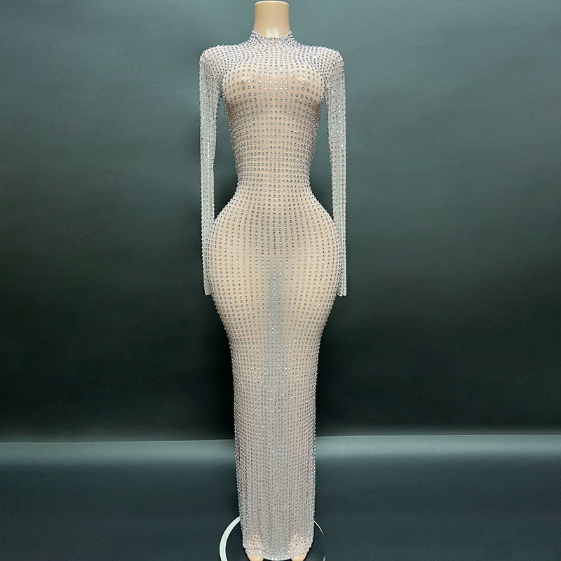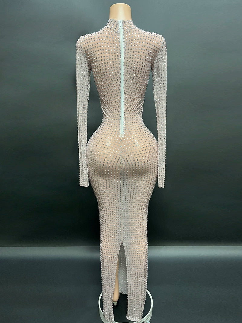 Norvans Spring New Arrival Shining White Diamond Elegance Back Slit Long Falling to the Ground Apricot Silm Dinner Footwear