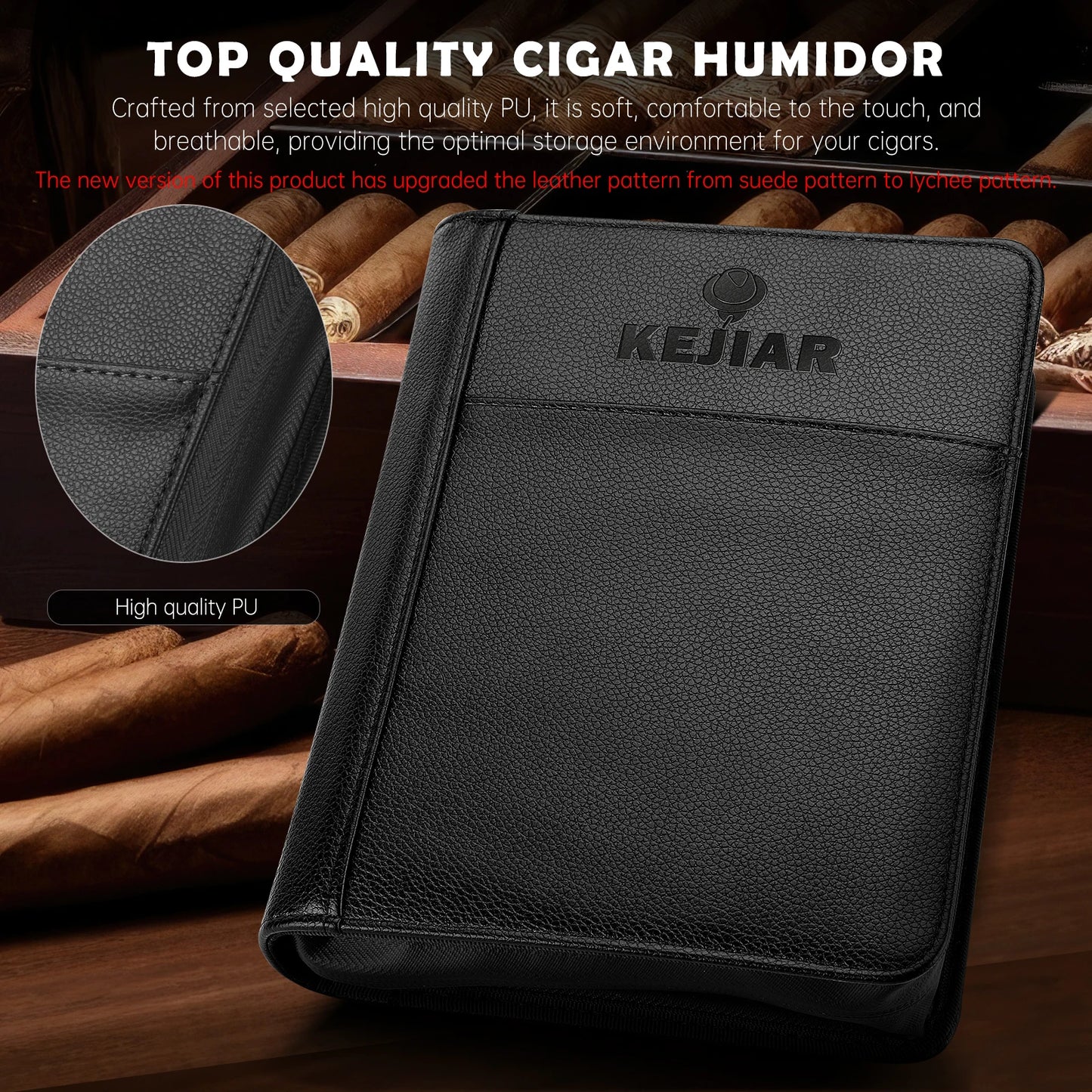 【High Quality Cigar Humidor】Our cigar humidor is crafted from premium LEATHER, soft and comfortable.this cigar case is durable enough to ensure the safety of your cigars on the go.Equipped with a 69% Two-Way HUMIDITY CONTROL PACKS maintains the ideal humidity range for your cigars,no worry about liquid leakage,no need to activate.the high-quality zipper ensures a perfect seal,it is design to easy to open,and keeping your cigars in optimal condition for extended periods,no matter where you are