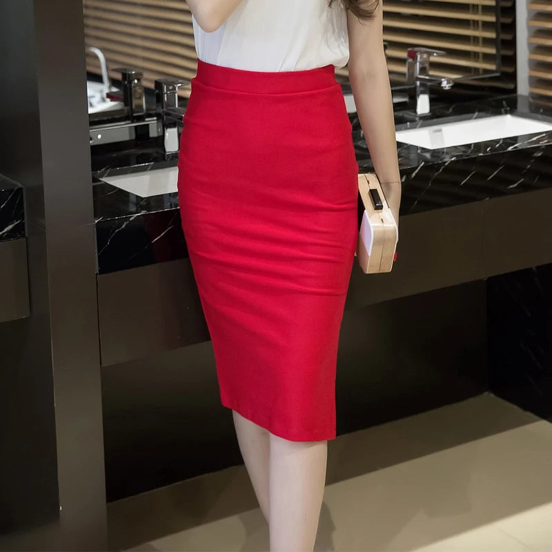 Side Split Package Hip One Step Skirt Stretch Sexy Black Skirt Size S-5XL