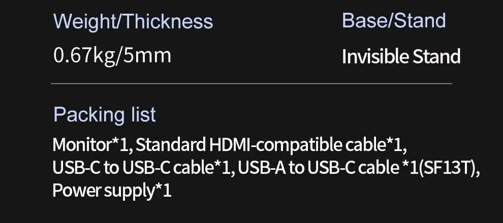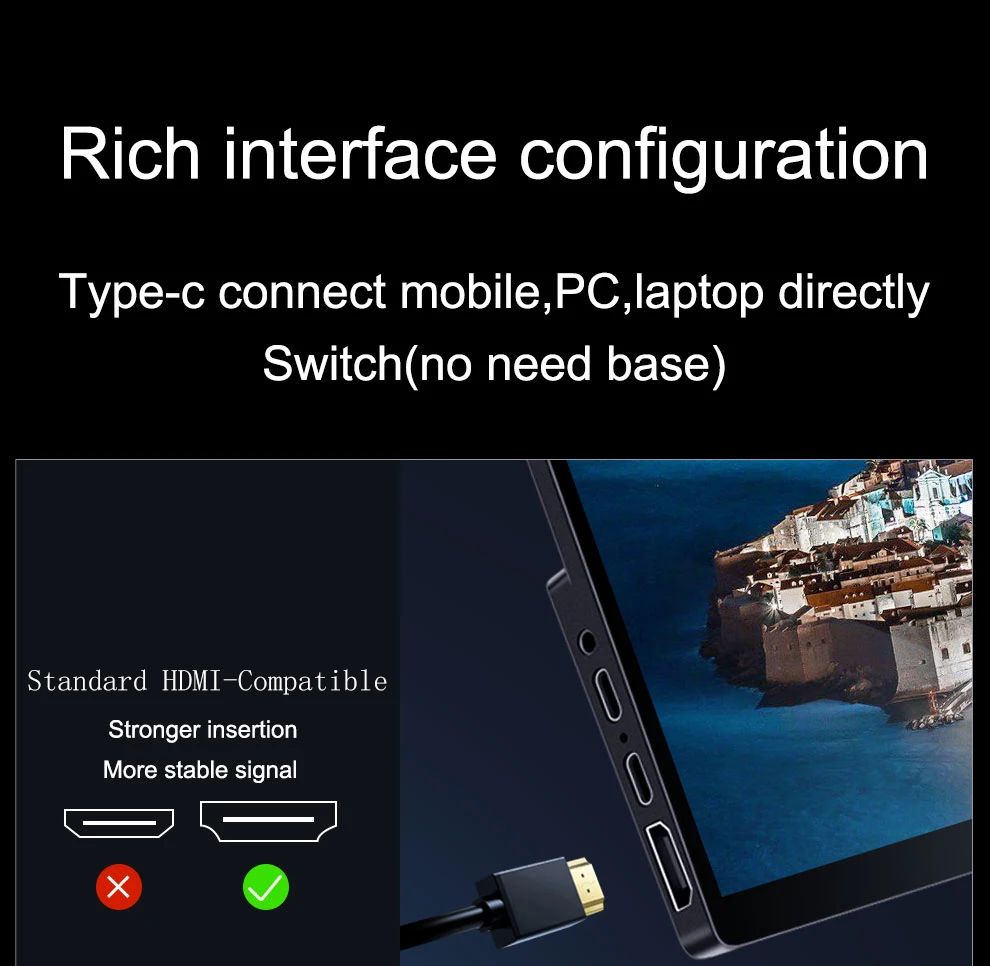 - Interface 1: 1*Standard Hdmi-Compatible, 1*USB-A 2.0, 1*3.5mm Aux