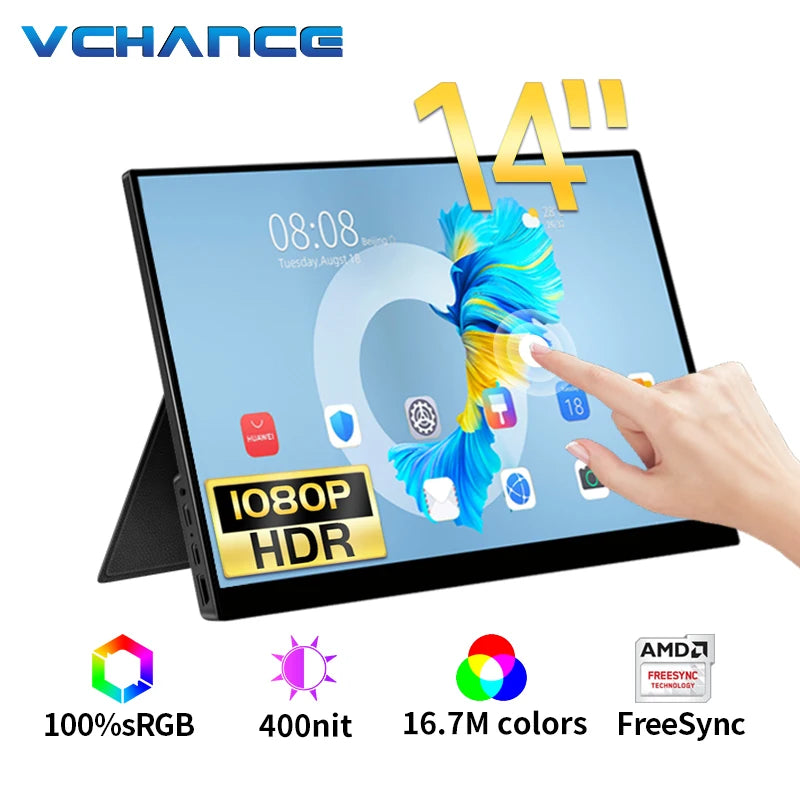 VCHANCE 14'' 1080P Full HD Portable Monitor Touch Screen Two Stands Second Screen for Laptop Ps4/5 Switch Xbox Gaming Display
