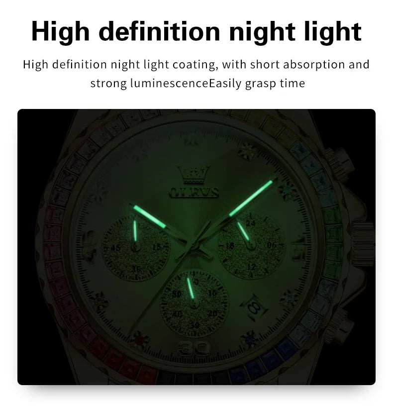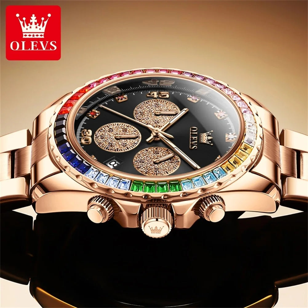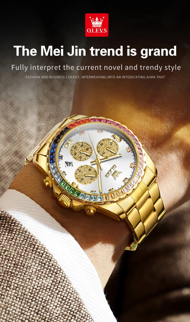 Watch for Men OLEVS Rainbow Gemstone Bezel Business Luxury Top Brand Quartz Watches Waterproof Sports Watches reloj hombre