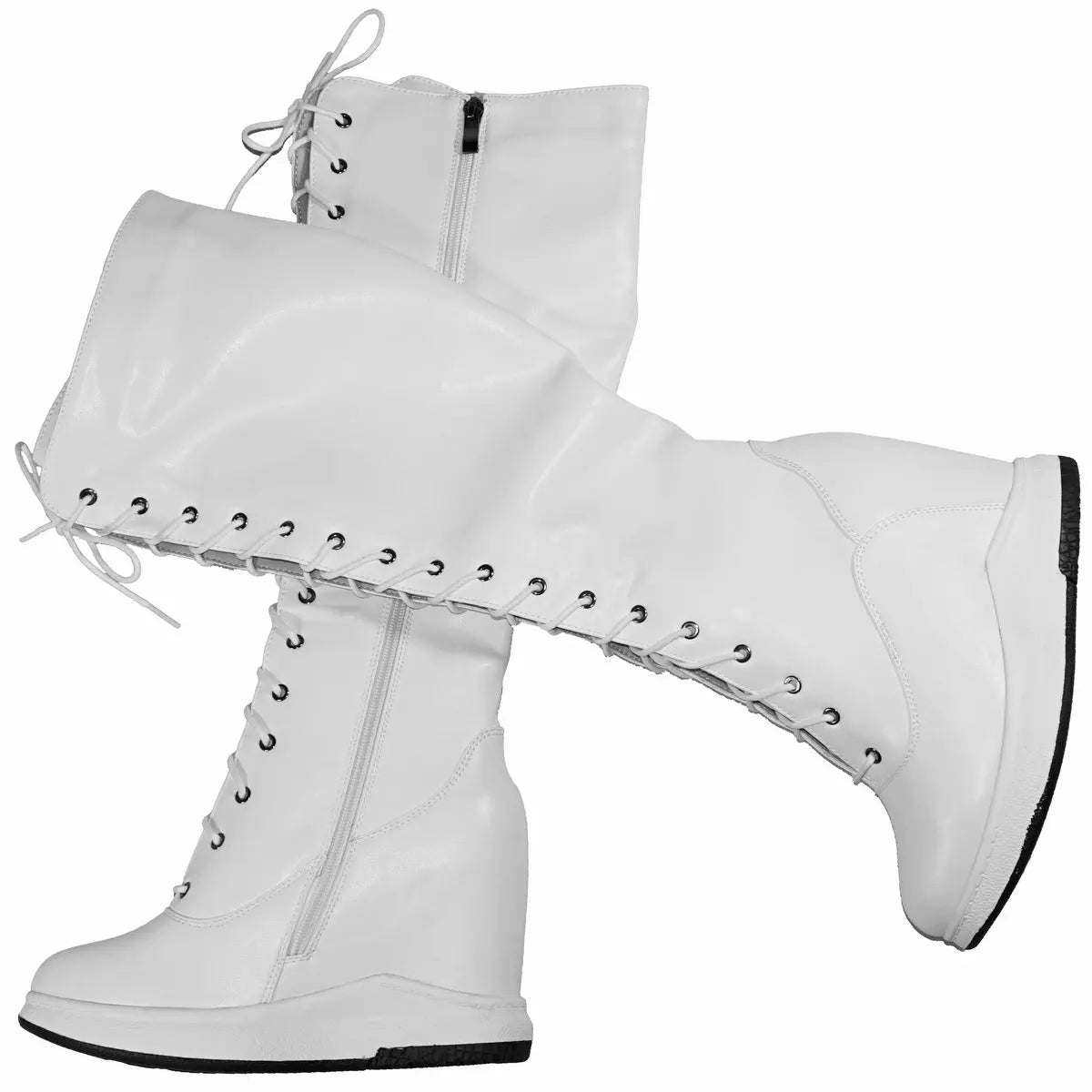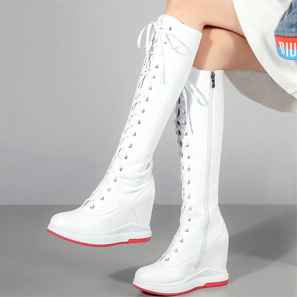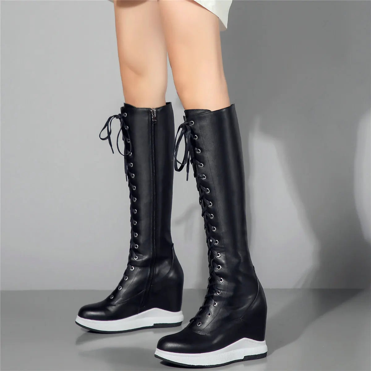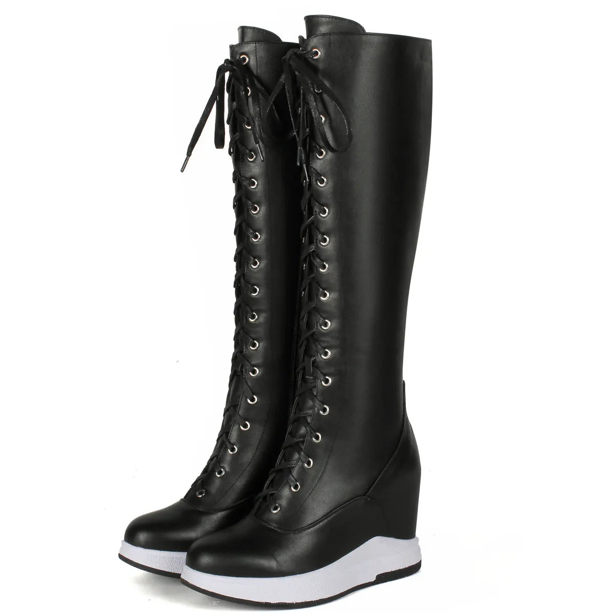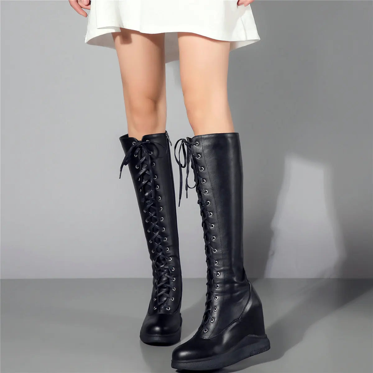 Winter Shoe Plus Size Shoes Women Genuine Leather Wedges High Heel Knee High Boots Female Round Toe Platform Pumps Big Size Shoe