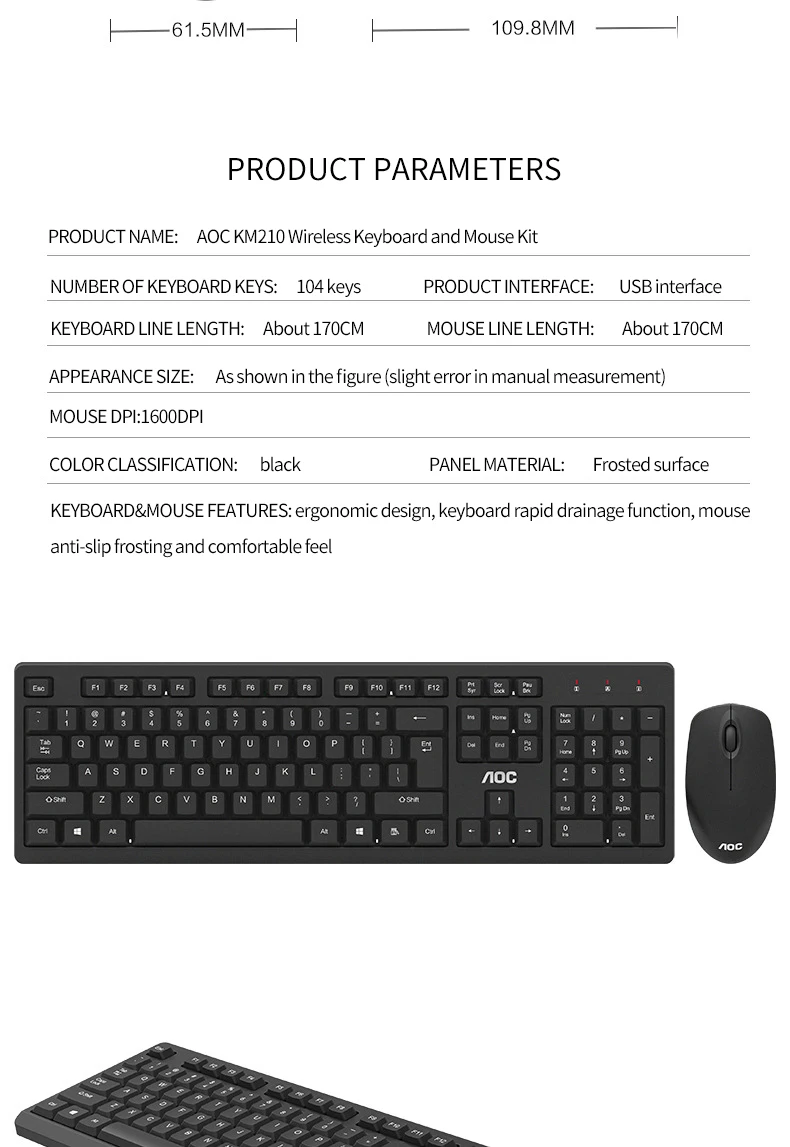 Wireless Mouse and Keyboard Set Mute Waterproof Home Computer Game Notebook