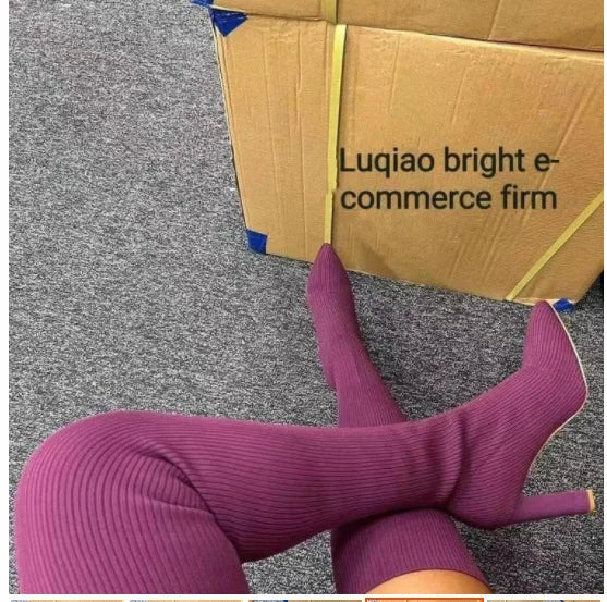Sexy Knit Socks: Thigh Slim Suede High Heel Stretch Boots